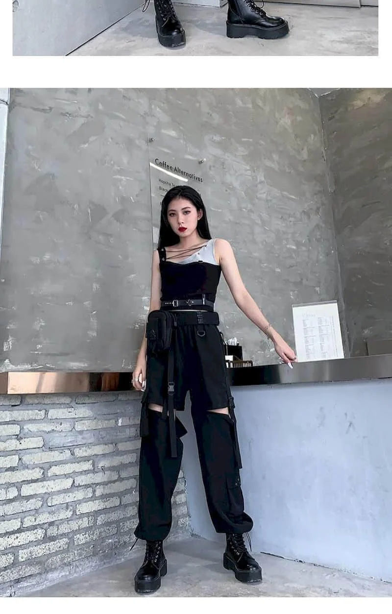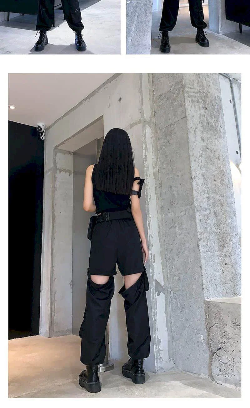Брюки-карго женские черные свободные с высокой талией, 2021