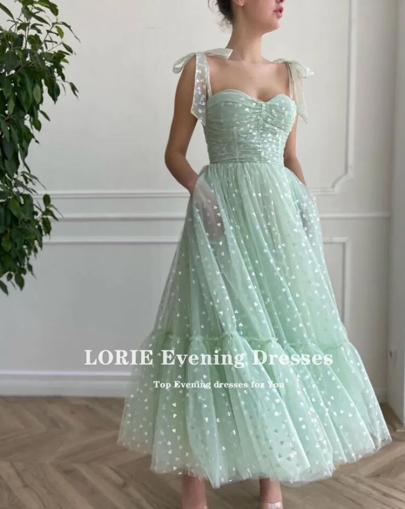 Блестящие платья LORIE для выпускного вечера мятно-зеленого цвета с регулируемыми бретельками, блестящее Тюлевое платье длиной ниже колена для Арабской свадьбы, выпускного вечера 2021