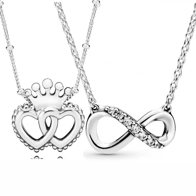 Сверкающее колье с символом бесконечности, настоящая Объединенная Королевская корона, сердечки, стандартное серебряное ожерелье для бусин Pandora, очаровательные ювелирные изделия сделай сам
