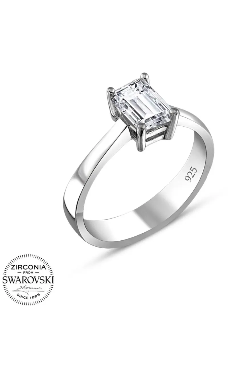 Кольцо из серебра 925 пробы с одним камнем, сертифицированное Swarovski