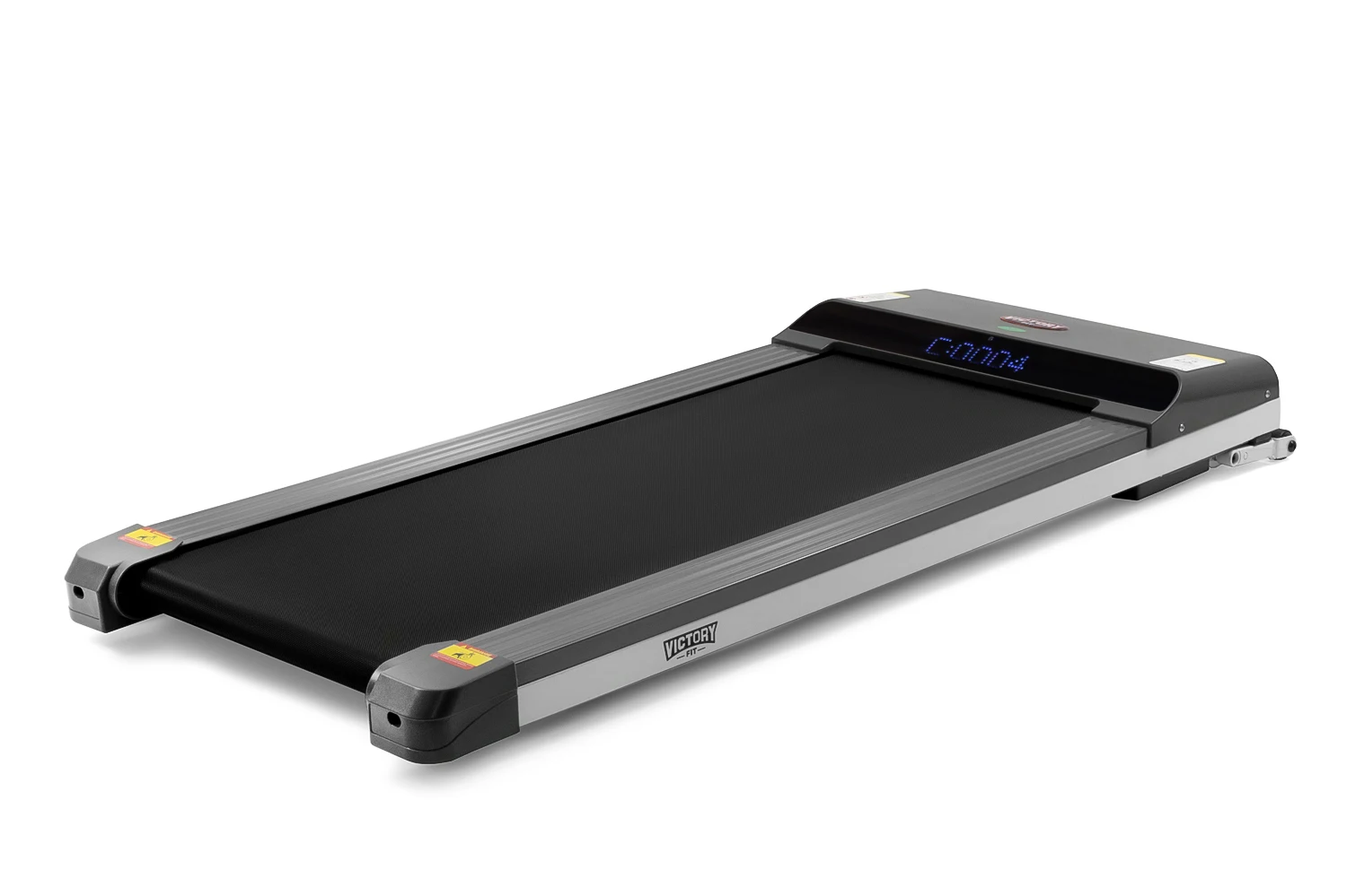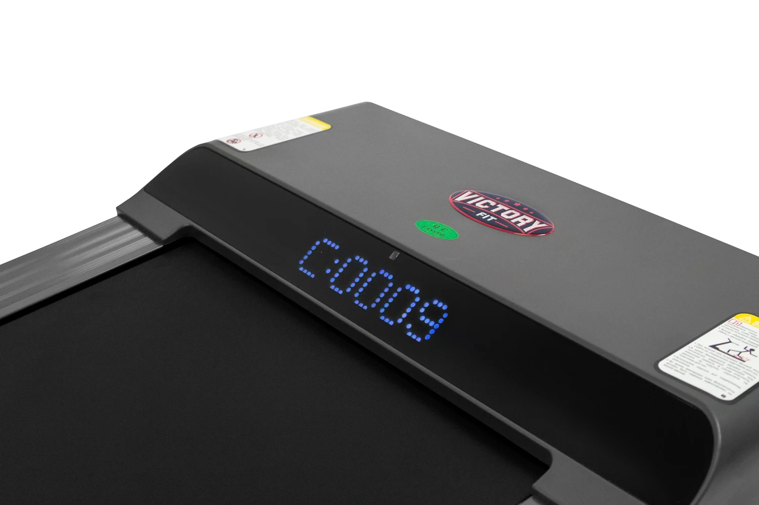 Беговая дорожка VictoryFit VF-612. Компактная модель без поручней. Предназначена для бега трусцой или быстрого шага. Регулировка скорости полотна осуществляется при помощи пульта дистанционного управления.Максимальная скорость ограничена 6 км/ч. Предусмотрена регулировка скорости с шагом в 0,5 км/ч. Беговая дорожка может храниться как в горизонтальном положении, так и в вертикальном.