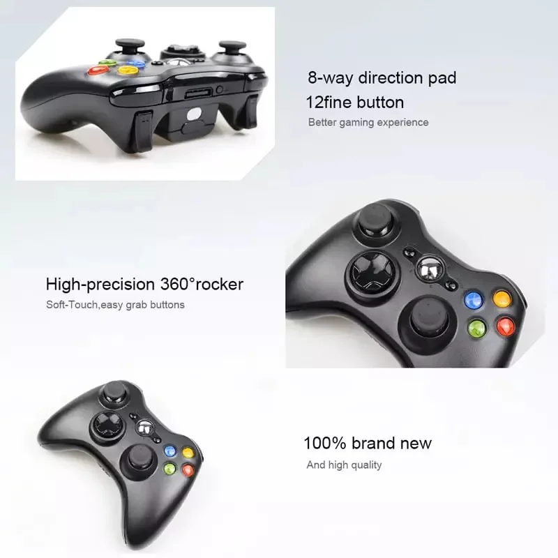 Высокоэффективное управление игрой без проводов! Использующий оптимизированную технологию, черный беспроводной геймпад для Xbox 360 работает на расстоянии 9 метров до 40 часов от двух батарей типоразмера АА. Подключите гарнитуру для Xbox 360 к геймпаду для дуплексной голосовой связи: радиосвязь прежде всего.
