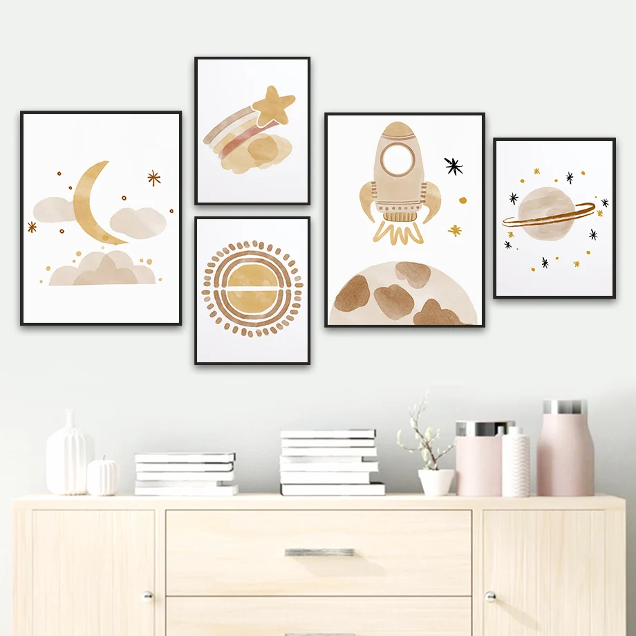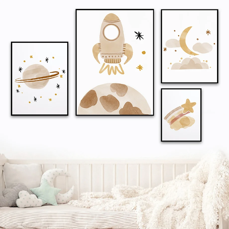 Плакаты и принты космоса, ракеты, планеты, звезды, луна, мультфильм...