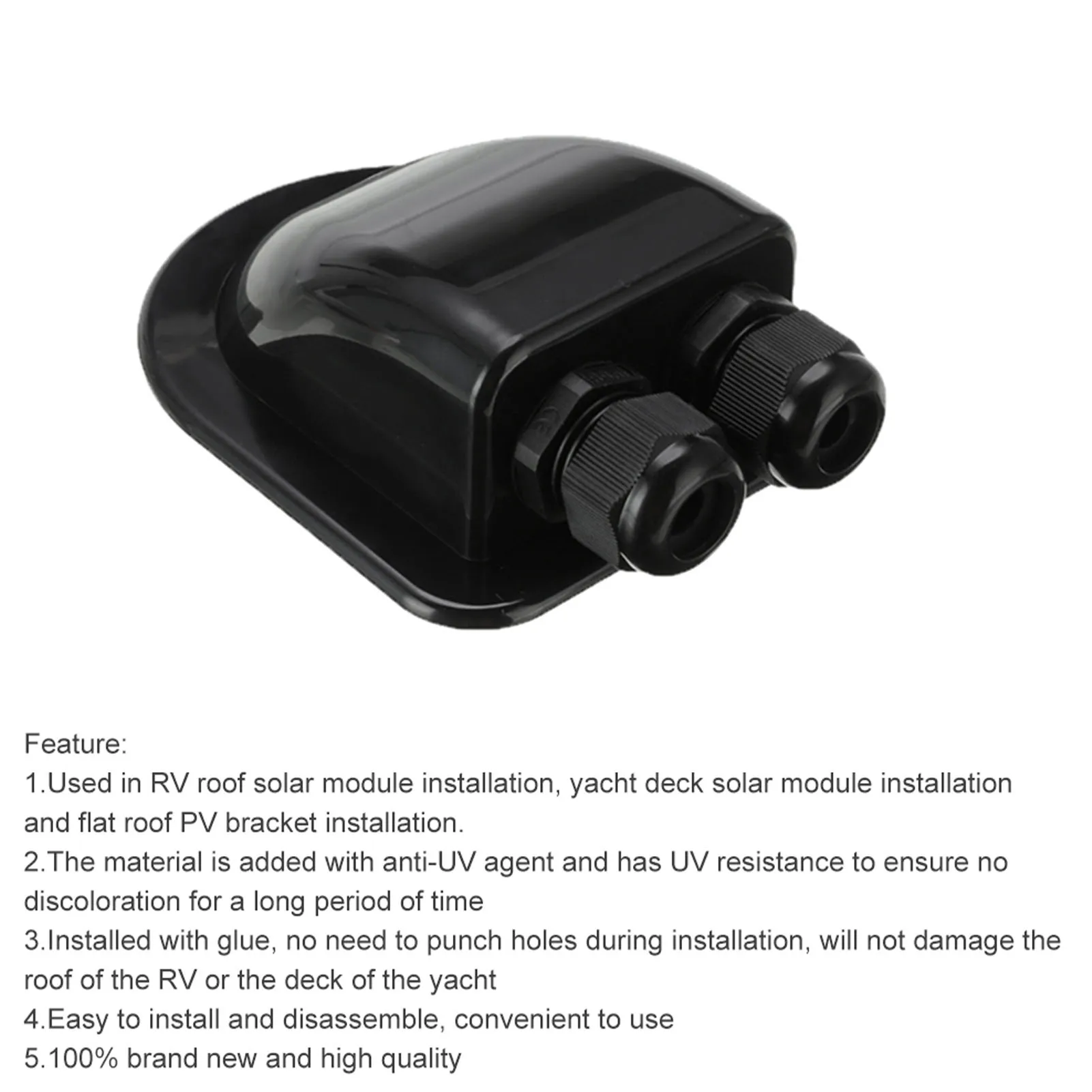 Описание:1. Используется для установки солнечного модуля на крыше RV, установки солнечного модуля на палубе яхты и установки кронштейна PV на плоской крыше.2. Материал добавлен с анти-ультрафиолетовым агентом, который обладает анти-ультрафиолетовыми характеристиками и гарантирует, что он не изменит цвет в течение длительного времени.3. Клей для установки, не нужно пробивать отверстия во время установки, не повредит крышу каравана или палубу яхты.4. Легко устанавливать и разбирать, легко использовать.5.100% новый и высококачественный.Параметры:Название: распределительная коробкаМатериал: пластикРазмер: около 115*95 мм/4,53 * 3.74inЦвет: белый/черный (как показано на картинке)Место установки: RV, camper, yachtСрок службы: более 20 летУпаковка: oppУпаковочный лист: