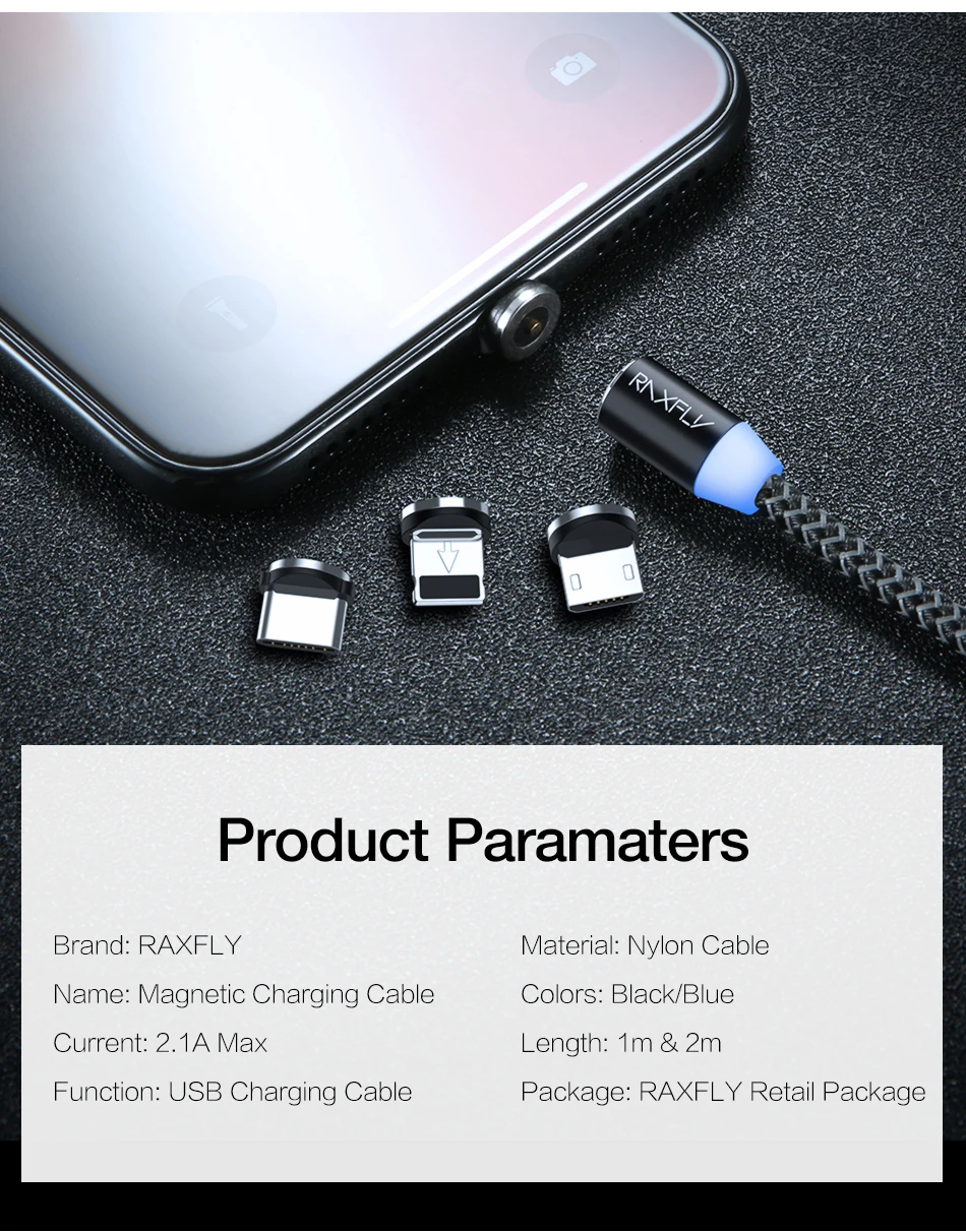 Магнитный зарядный кабель RAXFLY, Micro USB, для iPhone, Samsung S9...