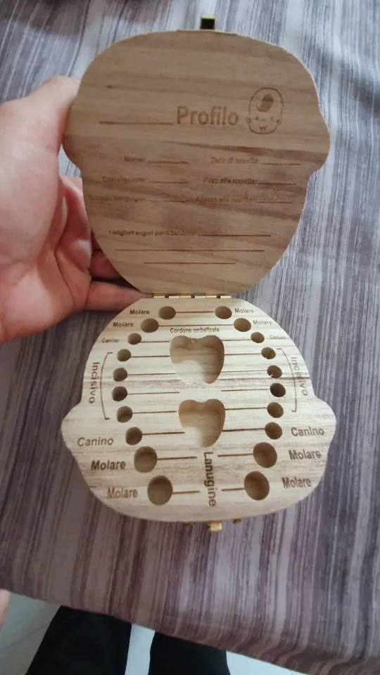 Деревянная детская коробка для хранения зубов, английскийиспанскийфранцузскийрусскийИтальянский зубы, органайзер для пупла Lanugo, подарочные пакеты, сохранить