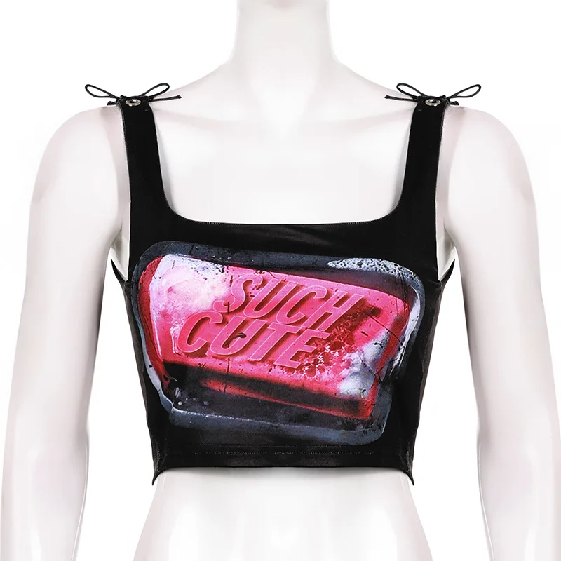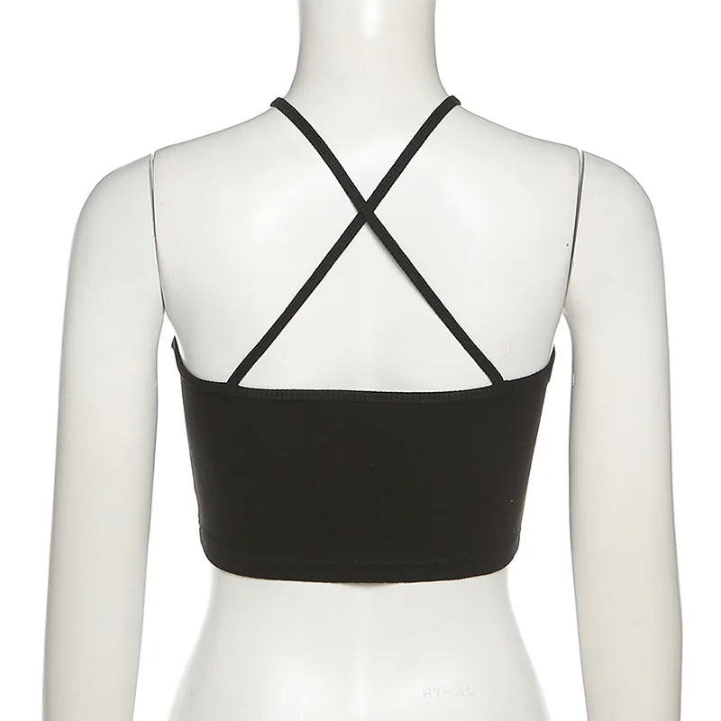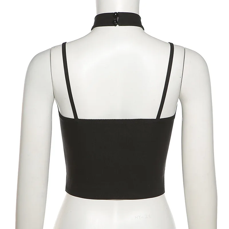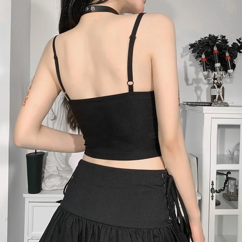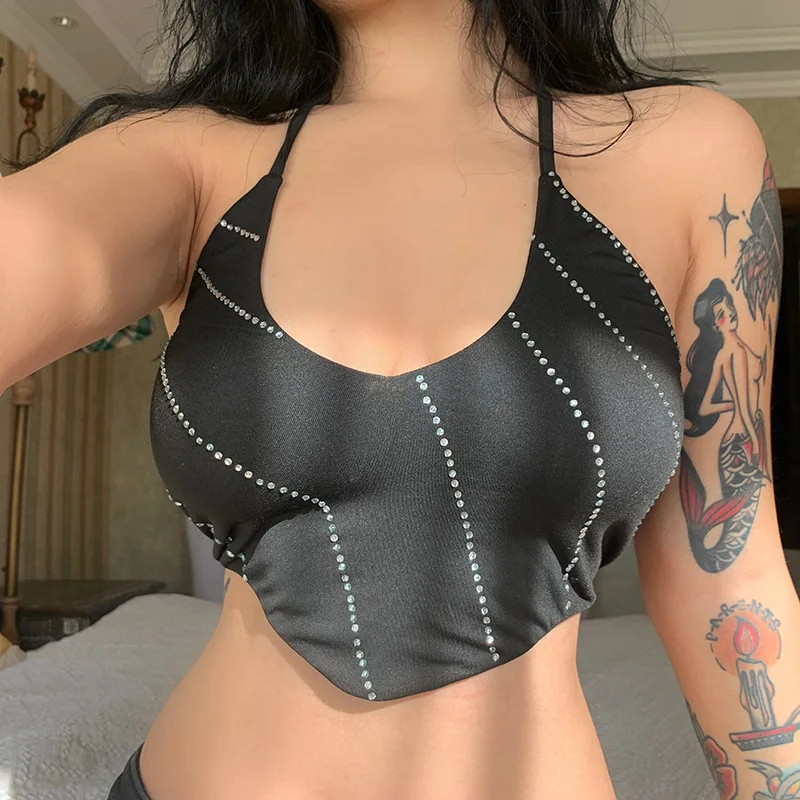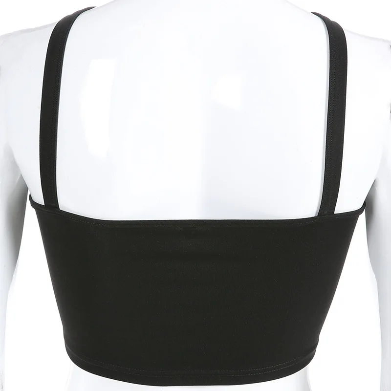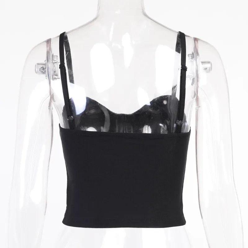 Женский укороченный топ на бретелях-спагетти, Черный корсет, сексуальный топ в стиле High Street 90-х Y2k, лето 2021