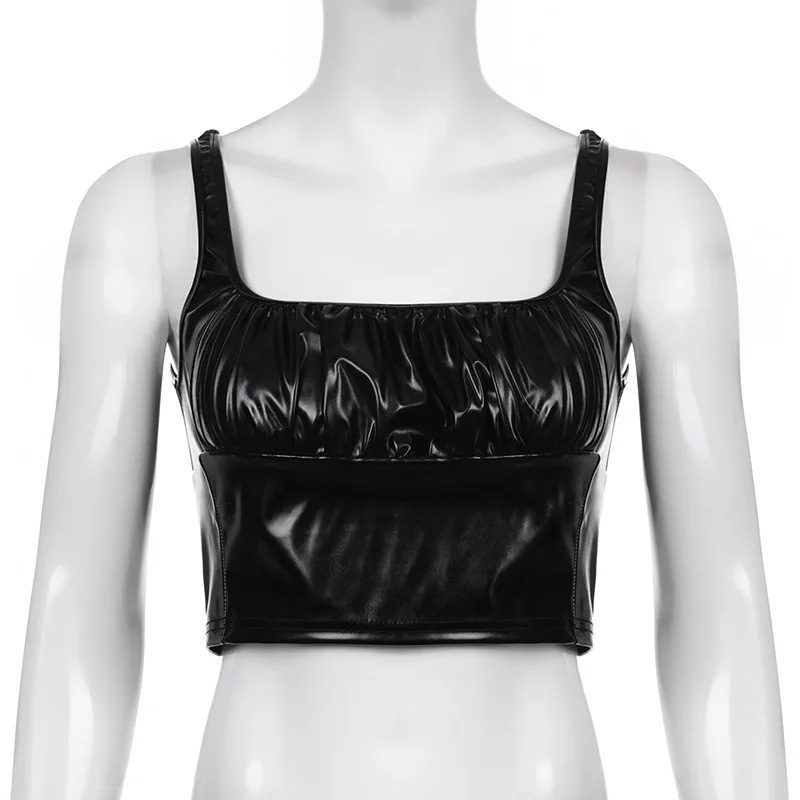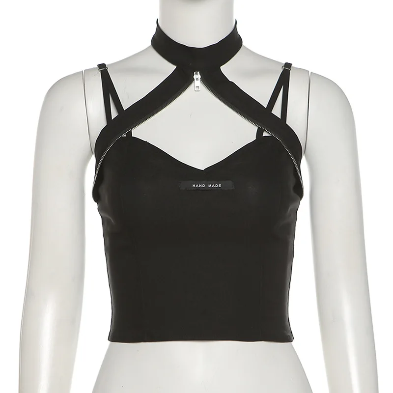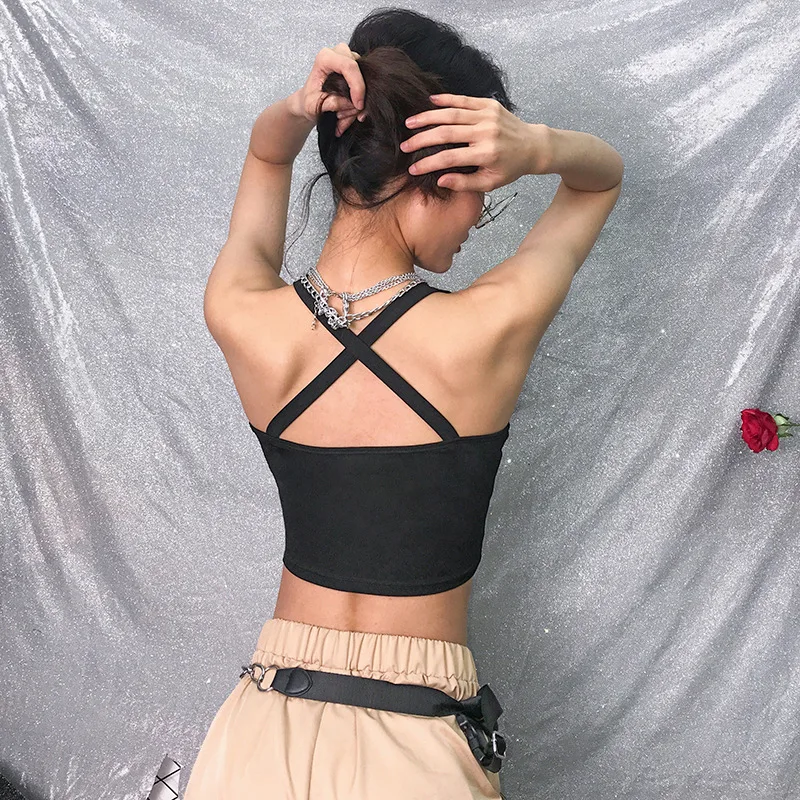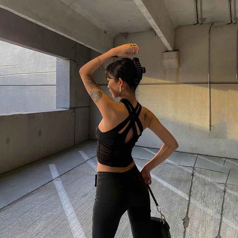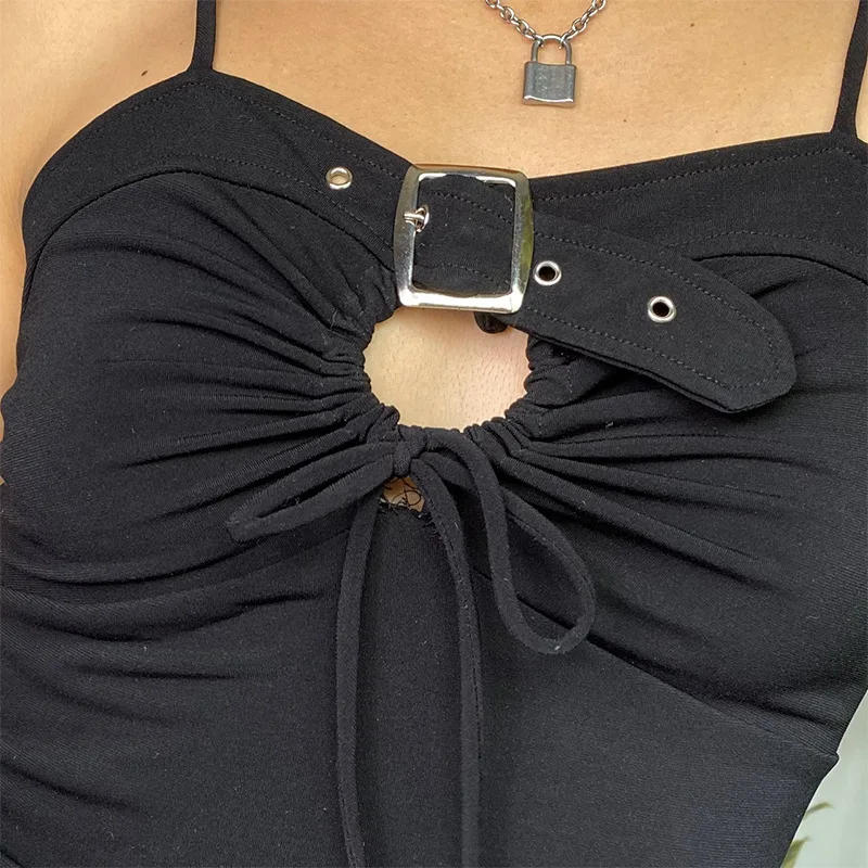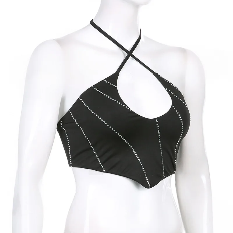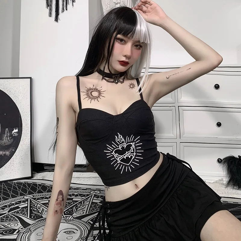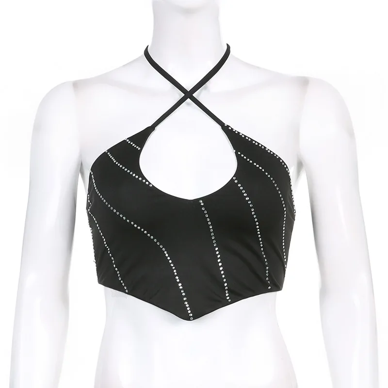 Женский укороченный топ на бретелях-спагетти, Черный корсет, сексуальный топ в стиле High Street 90-х Y2k, лето 2021