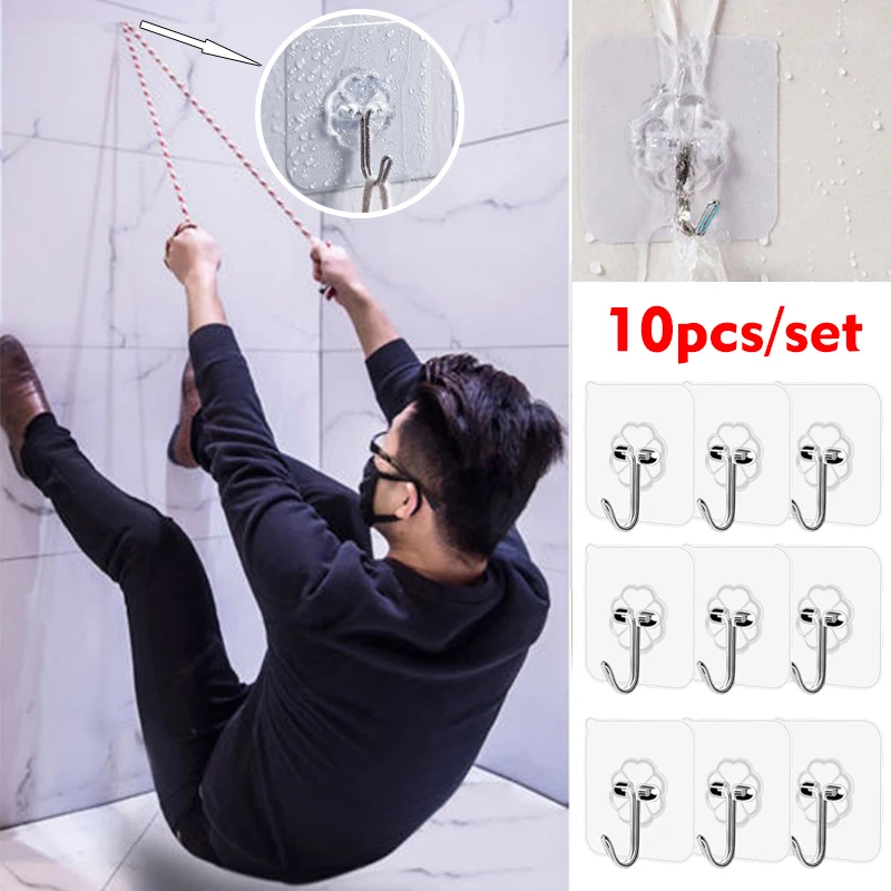 Прозрачные настенные крючки для ванной комнаты, 10 шт., водонепрони...