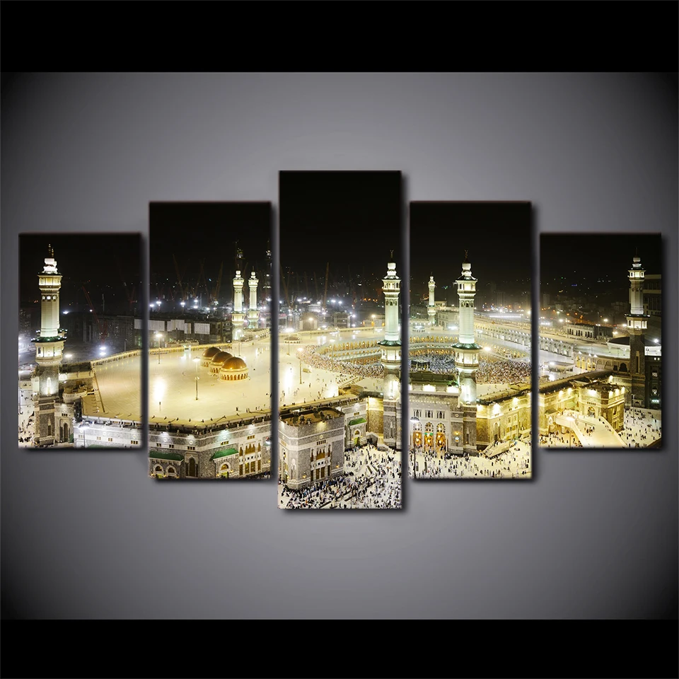 5 Panel Islamic Mosque City Night View Landscape Pictures