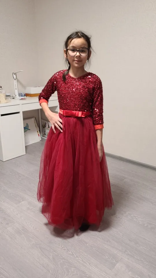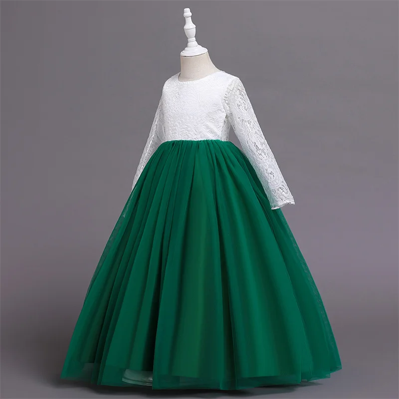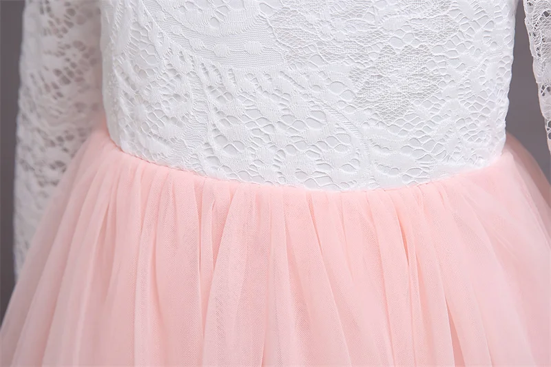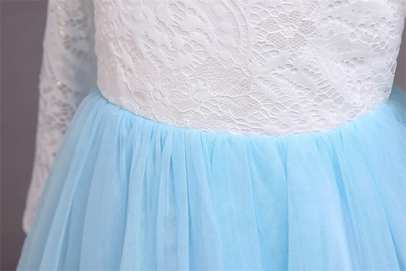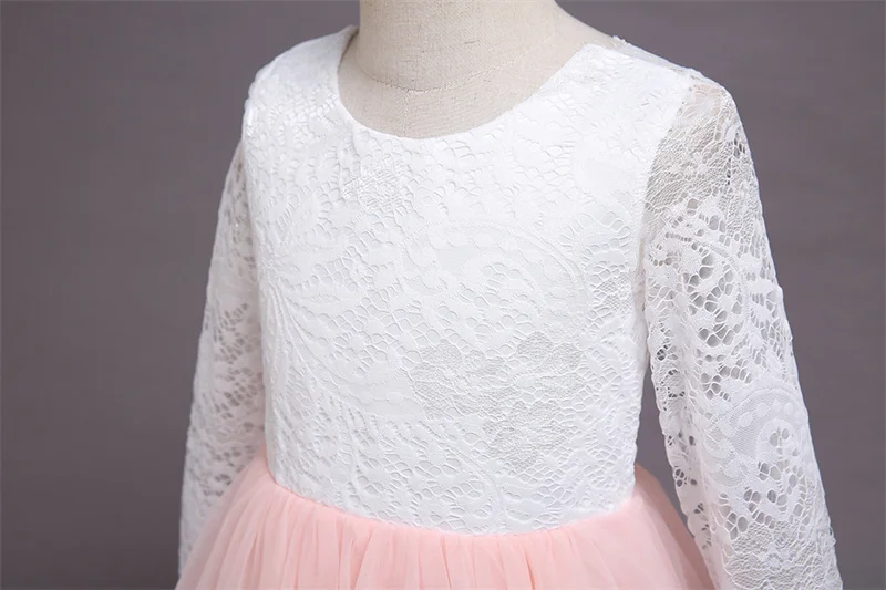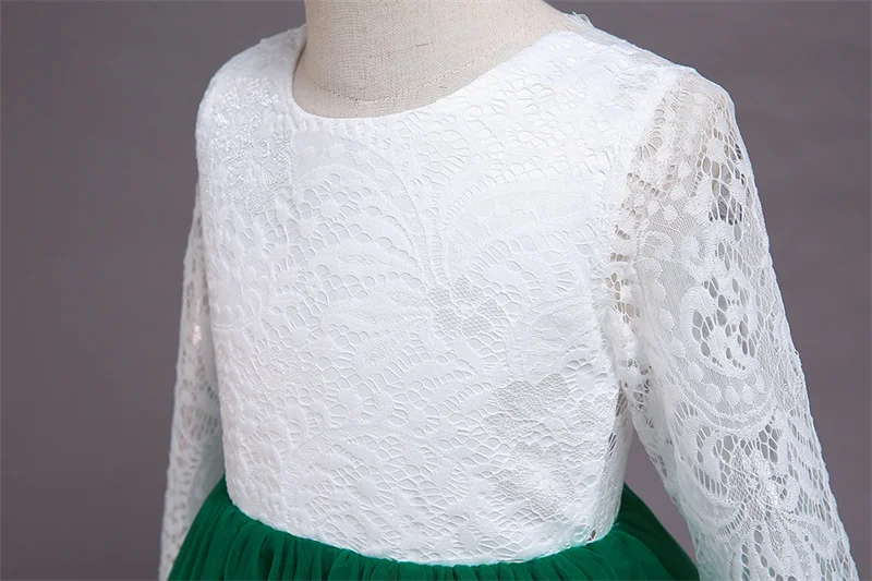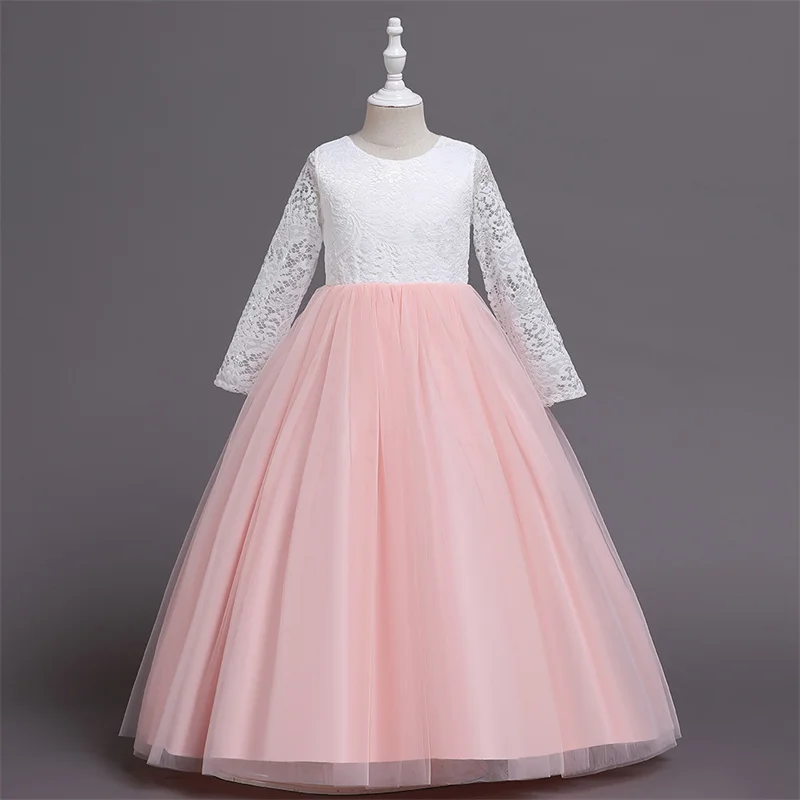 Детское длинное платье с блестками и цветами для свадебвечерние НКИ элегантное праздничное кружевное платье с длинными рукавами и вышивкой для маленьких девочек