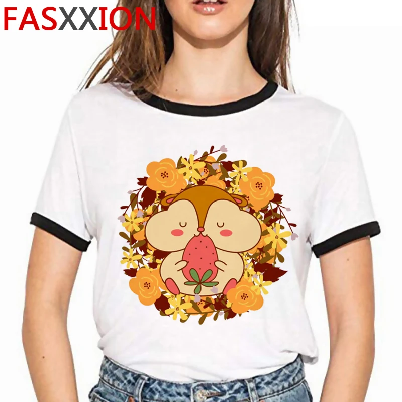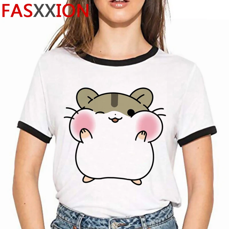 Футболка женская с рисунком хомяка и манги, повседневная Милая рубашка в стиле Харадзюку, уличная одежда в стиле аниме, лето