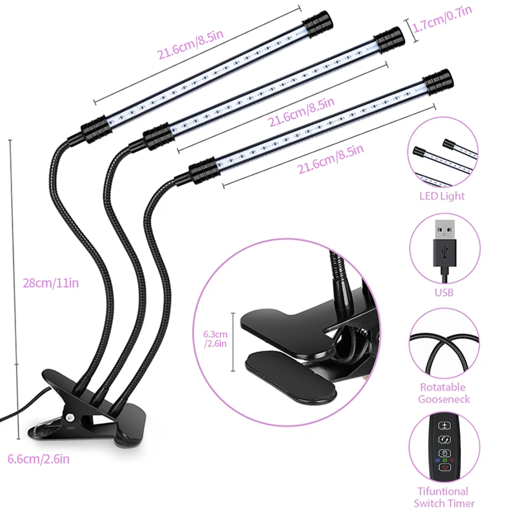 Этот светильник с четырьмя гусиными шеями обеспечит вам большую площадь светильник щения, 4 головки света для комнатных растений ярче, чем у других растений светильник для выращивания и пониженное тепло. Высокая производительность и эффективные функции делают ваши растения растут быстрее и здоровее, способствуют фотосинтезу, увеличивают темпы роста, идеально подходят для всех этапов роста растений. Он обладает характеристиками низкого тепловыделения, что дает ему Завидный срок службы плюс более низкие затраты на техническое обслуживание для пользователя. Наши светильники подходят для комнатных горшечных растений или комнатных садов. Он ускоряет рост различных растений на каждом этапе развития. Особенности -Цвет: черный. -Материал: алюминий. -Размер: 35x13,5x8 см. -Функция автоматического открытия/закрытия и таймера: наш светильник для роста растений-это новейший светильник для роста растений с функцией автоматического таймера. -9 уровней яркости и 3 режима освещения: адаптация к разным стадиям роста растений. Он имеет 9 уровней интенсивности света и 3 режима спектра, которые могут удовлетворить потребности на разных этапах роста растений. -Эффективное рассеивание тепла: Алюминиевый Теплопроводящий материал и конструкция с ребристой теплоотдачей эффективно ускоряют рассеивание тепла. Обладает характеристиками низкого тепловыделения. -Длительный срок службы и снижение затрат на обслуживание пользователей. -Большое покрытие: Наши светильники для выращивания подходят для комнатных горшечных растений или комнатных садов. Он ускоряет рост различных растений на каждом этапе развития. Лампа для роста растений обеспечивает большую площадь покрытия. Упаковочный лист