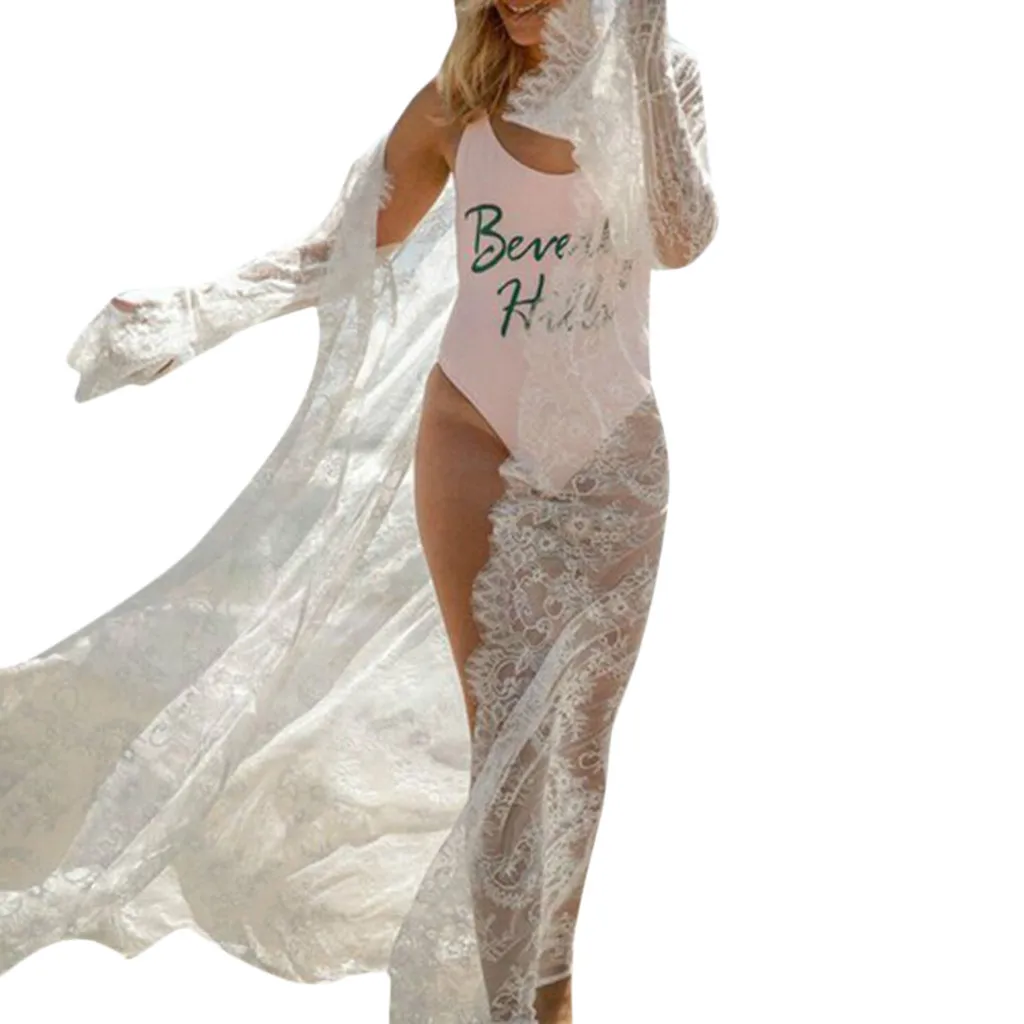 Для женщин Пляжное платье купальники кружевное шифоновое вязаное крючком бикини накидка купальный костюм