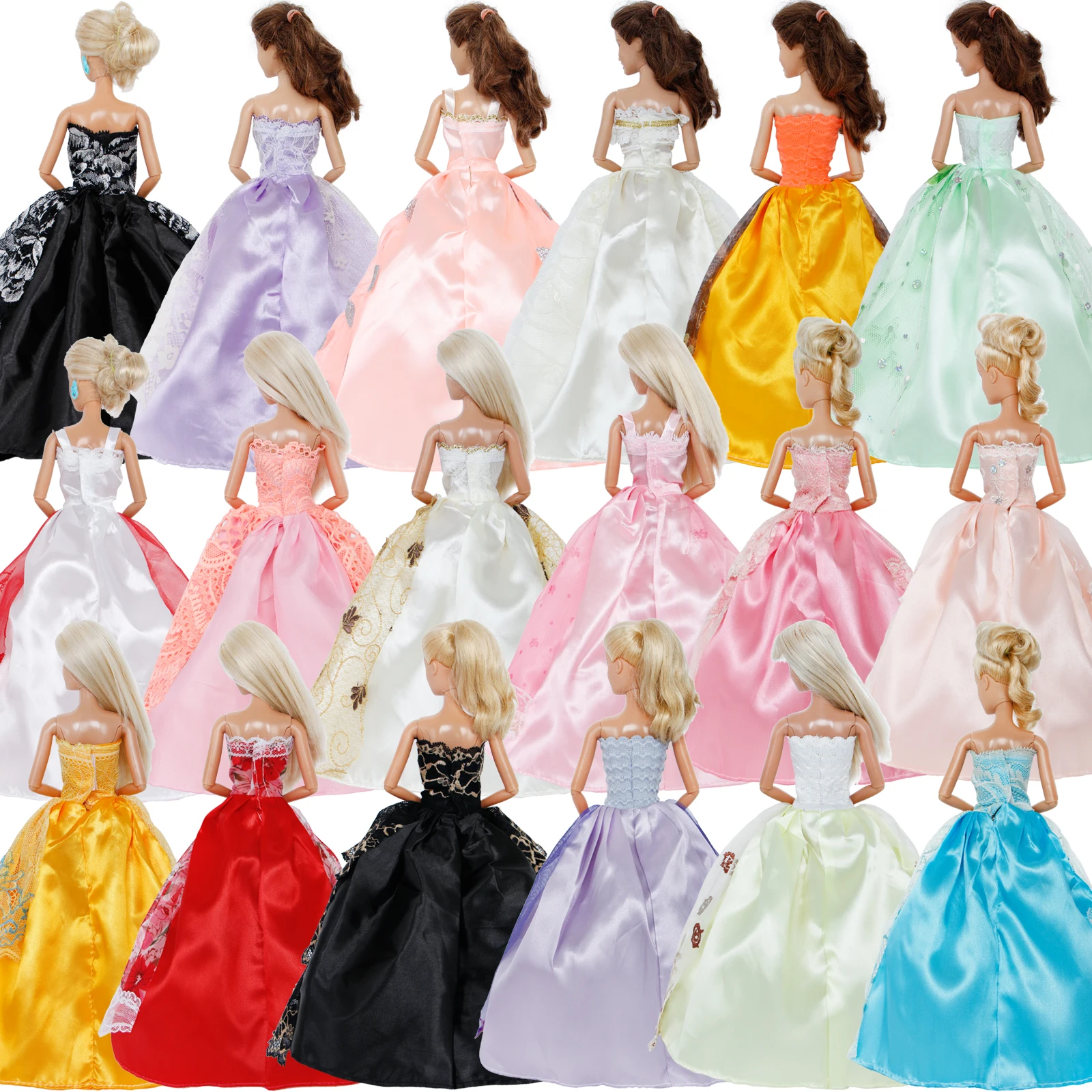 Случайный 37 шт. кукла аксессуары для куклы Барби дома играть 2x длинное платье в пол, одежда + туфли + вешалки + сумки + украшение на шею, детские игрушки