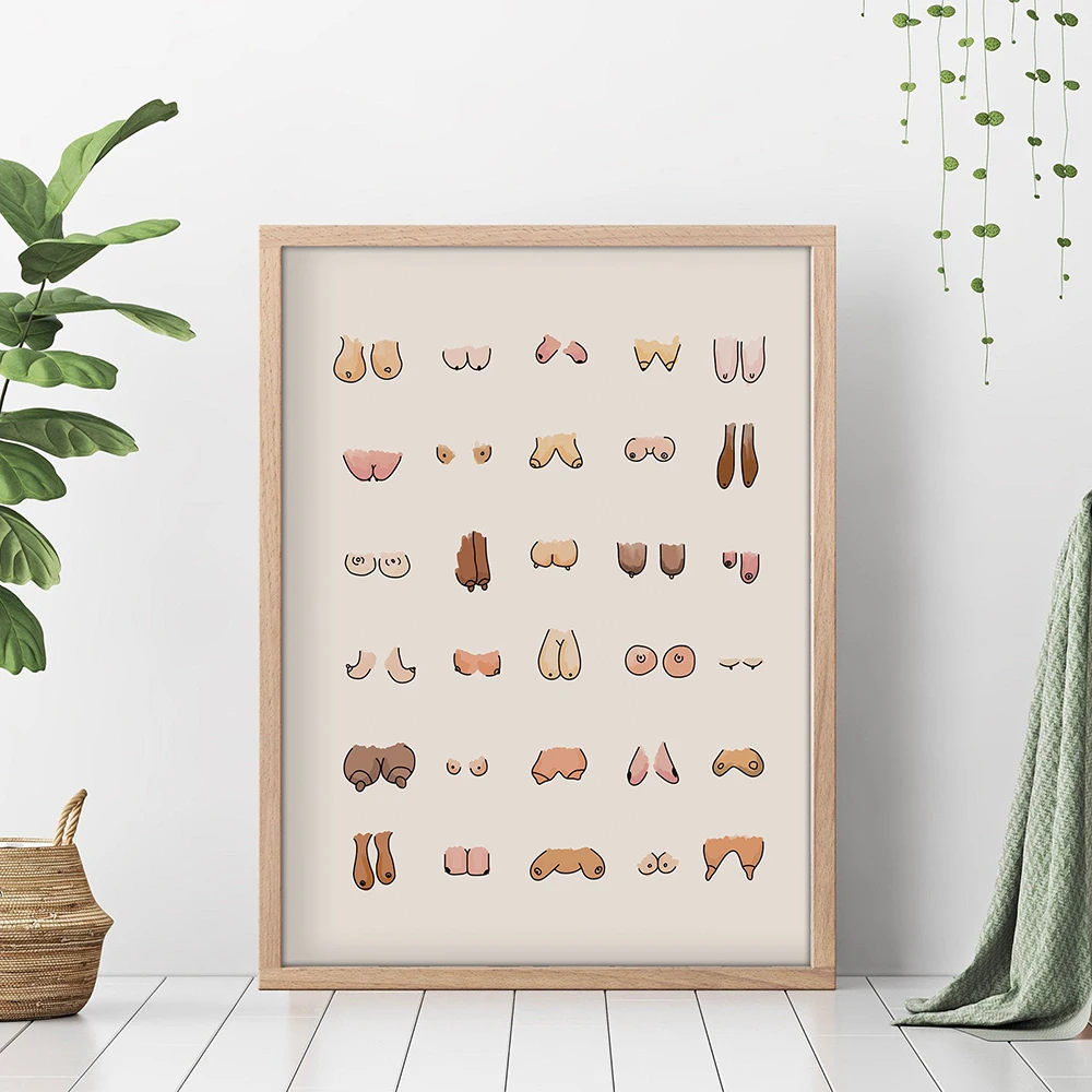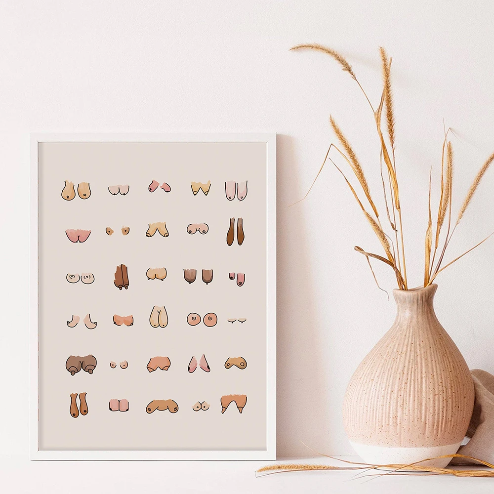 Настенная картина на холсте с изображением забавной груди для ванно...