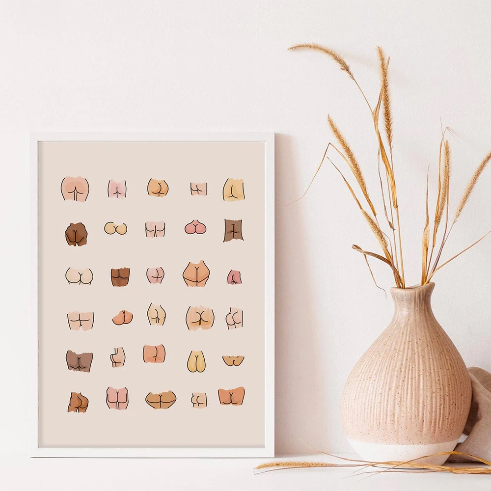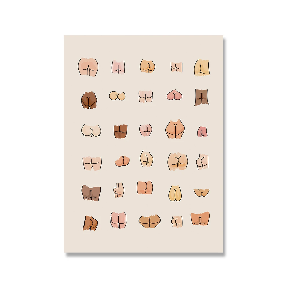 ThemeFunny Bathroom Bum and boobs Illustration Line Nude