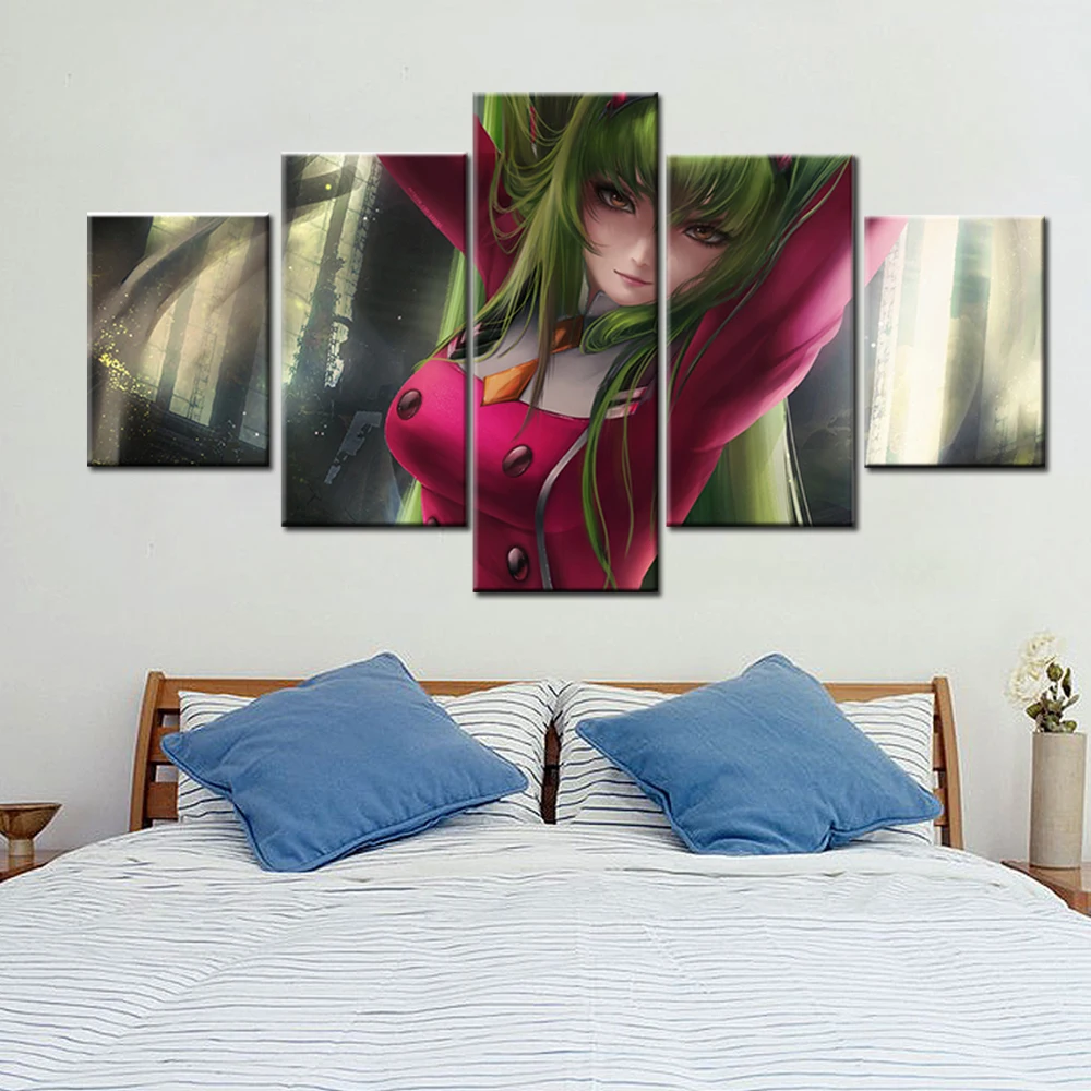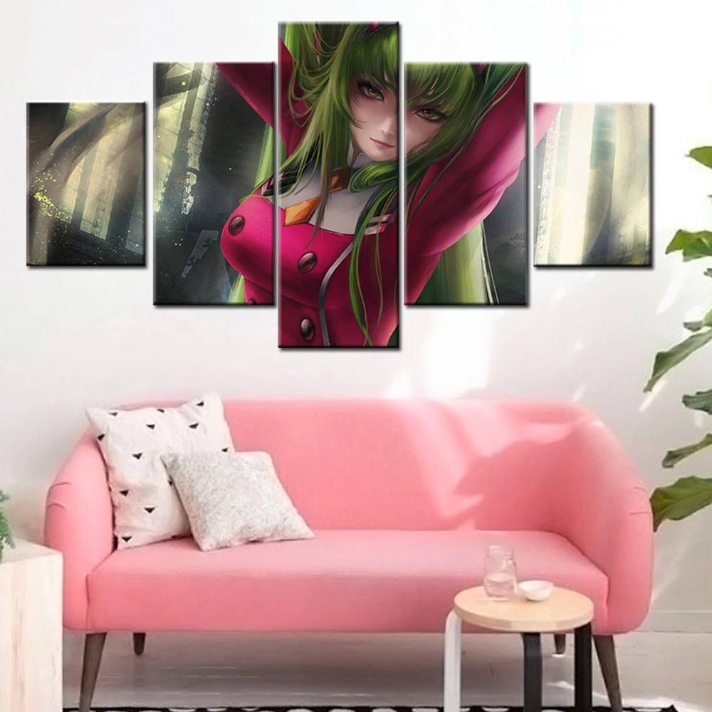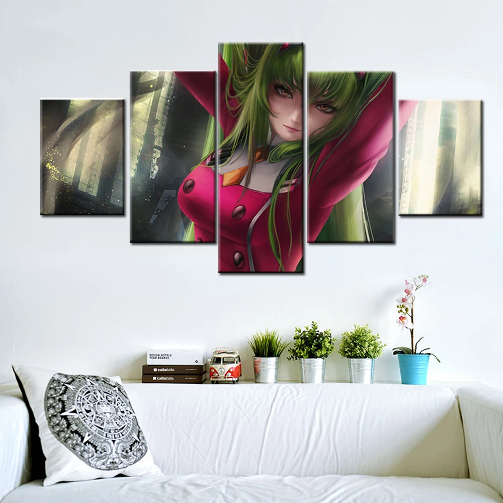 Модульная Картина на холсте для домашнего декора, 5 панелей, аниме Geass C.C., Постер для гостиной, настенная Картина на холсте для дома, оптовая продажа