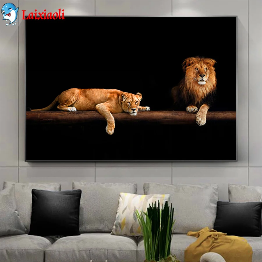 Картина с африканскими дикими животными львом, настенное искусство с бриллиантами, украшение в виде зверя, алмазная вышивка, мозаика для гостиной