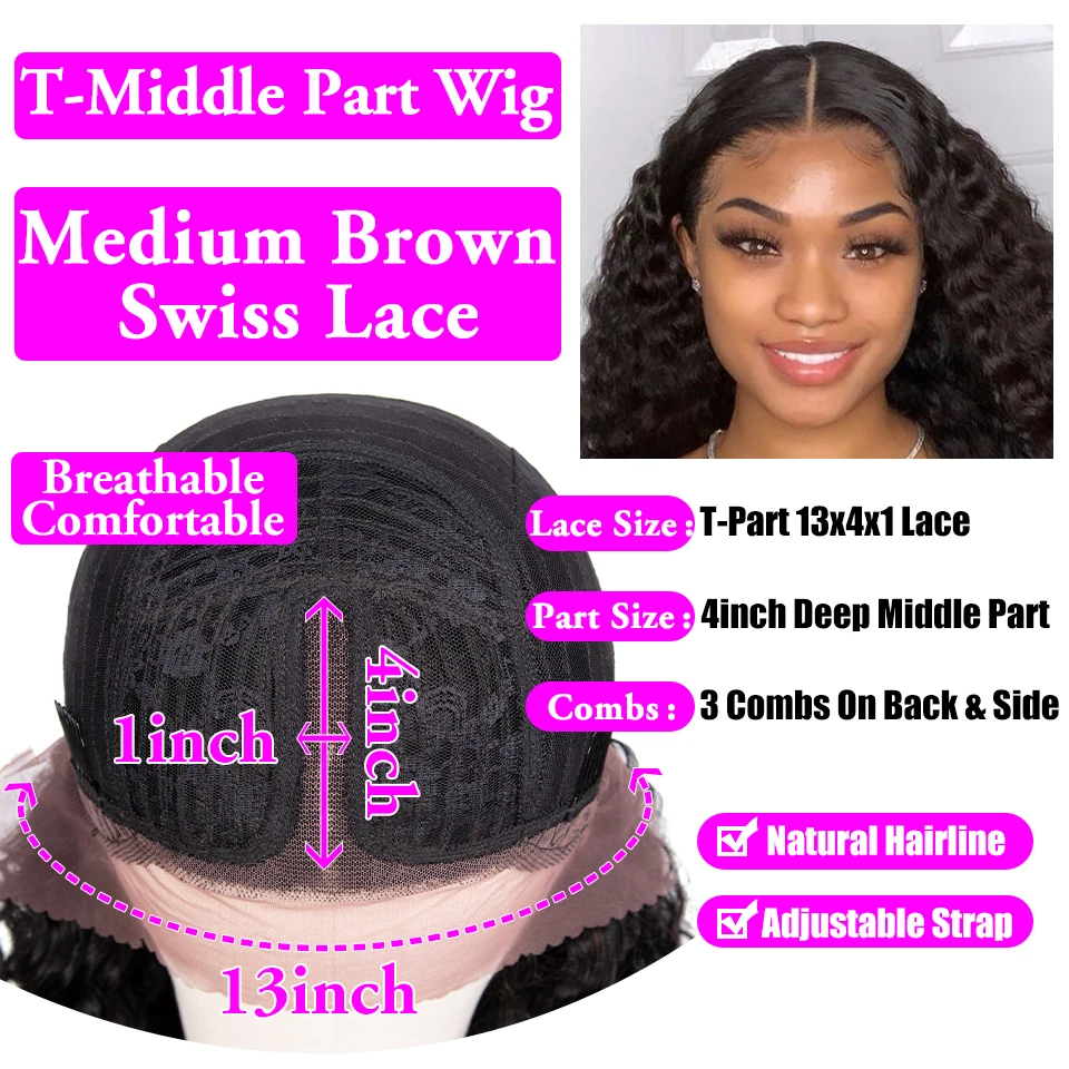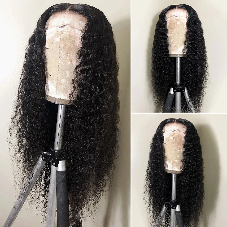 Бразильский парик на сетке T-образной формы с глубокими вьющимися волосами 4x4, предварительно выщипанный парик на сетке 13x1 с глубокими волнами, человеческие волосы Remy 180 плотности, естественного цвета