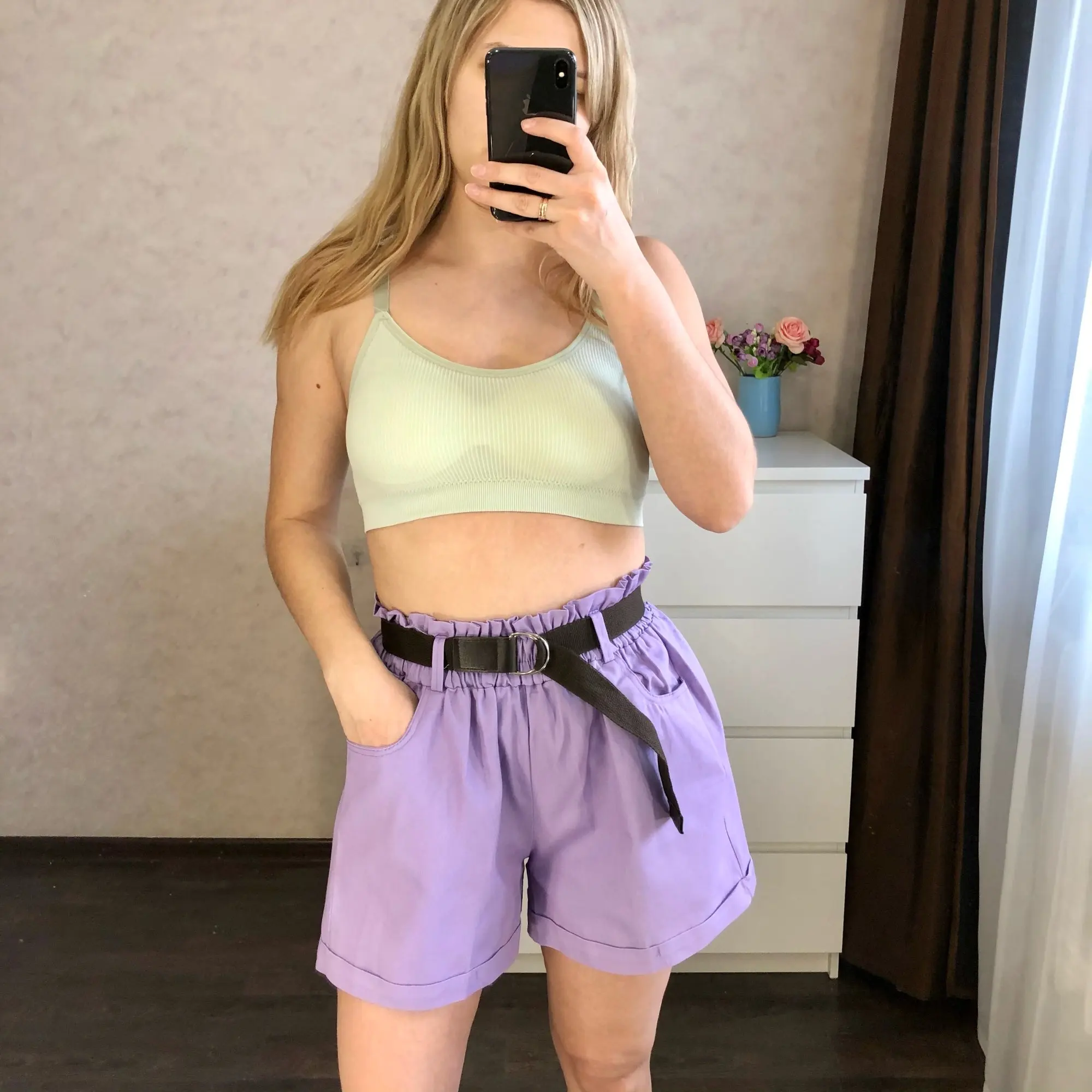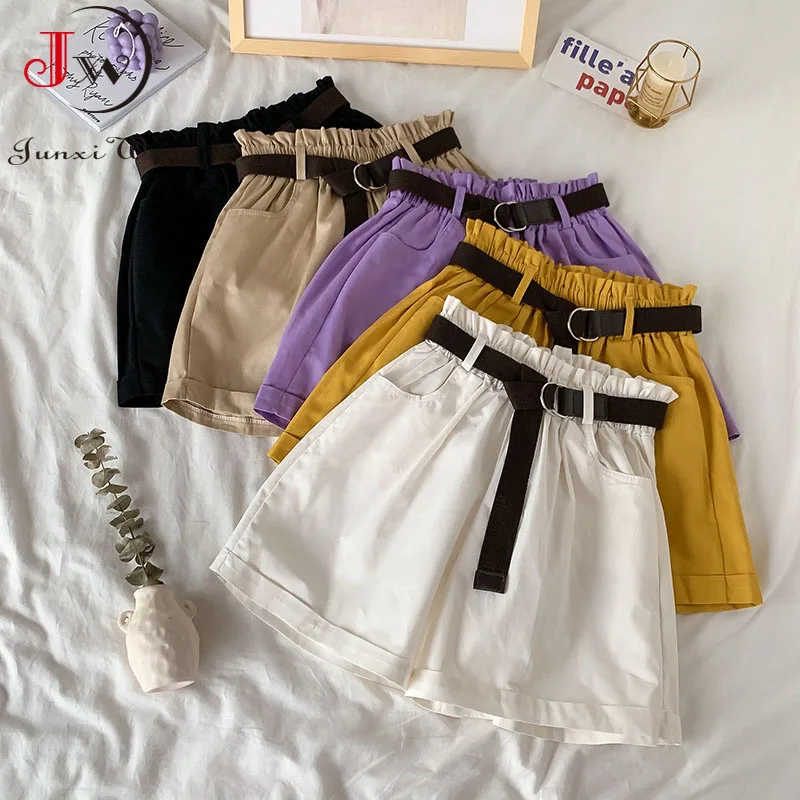 2022 летние элегантные шорты с высокой талией, женские повседневные однотонные свободные хлопковые шорты с поясом, корейские милые шорты для девочек
