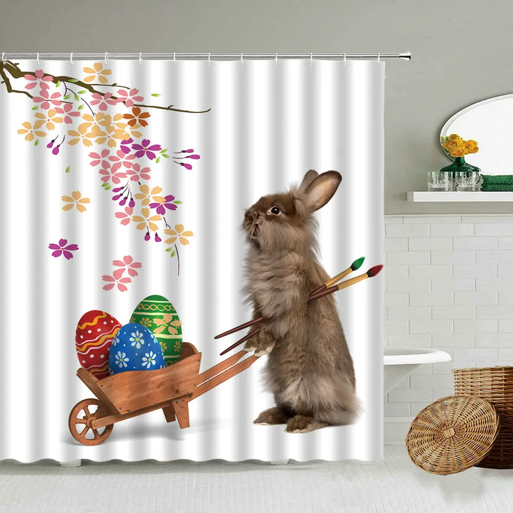 Пасхальная занавеска для душа с изображением милого кролика, животного, яйца, белого цвета, креативное украшение на стену ванной комнаты, водонепроницаемый экран