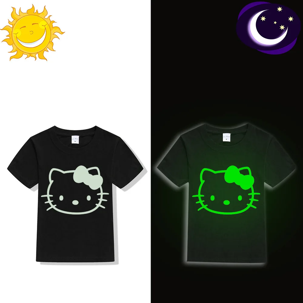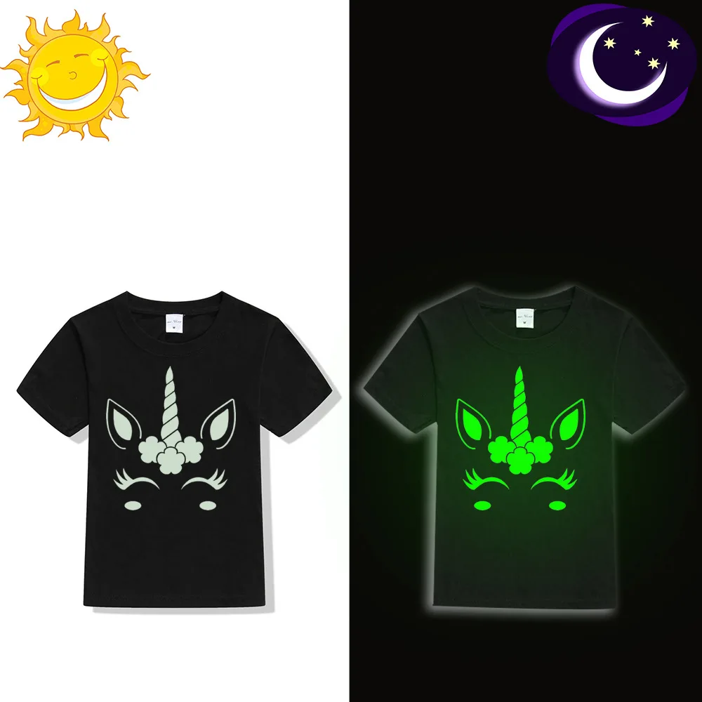 Летние светящиеся футболки с короткими рукавами для маленьких мальчиков и девочек, новые модные футболки с мультяшным принтом, От 1 до 12 лет