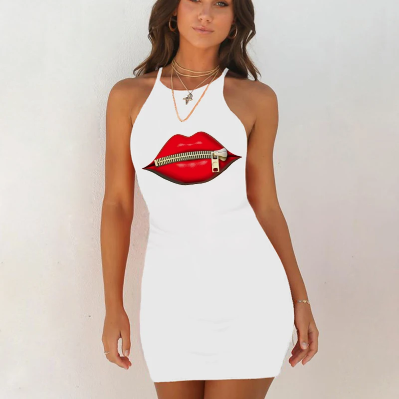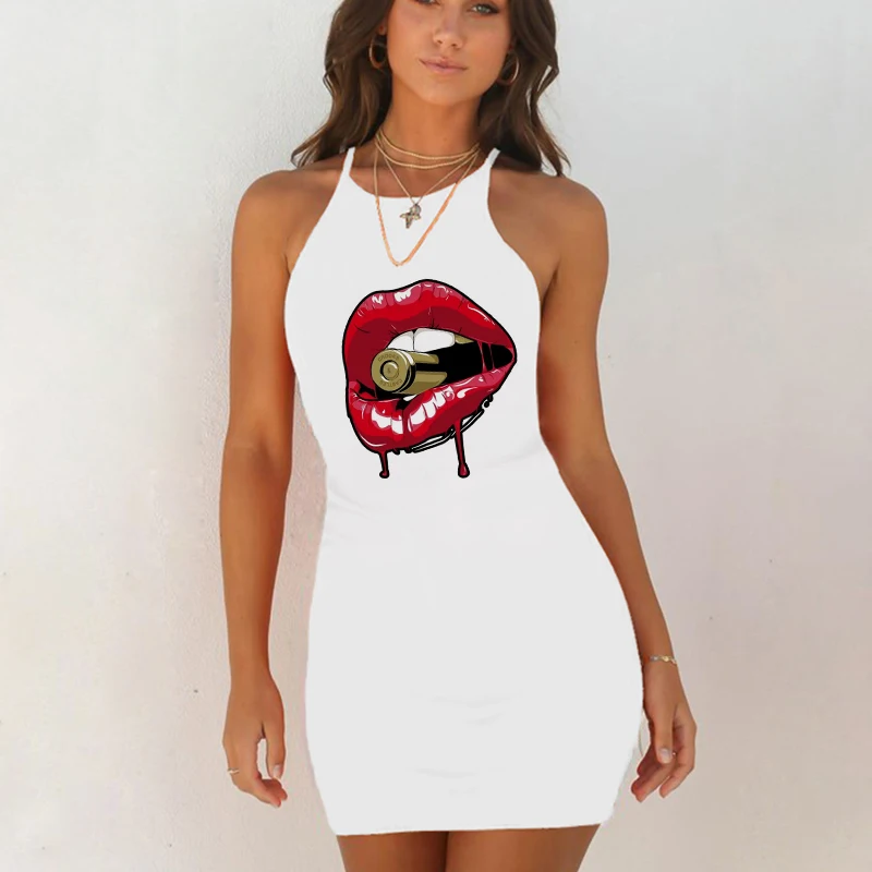Ночная сорочка женская с принтом губ, пикантная ночная рубашка, ночная рубашка, банный халат, белый цвет, лето
