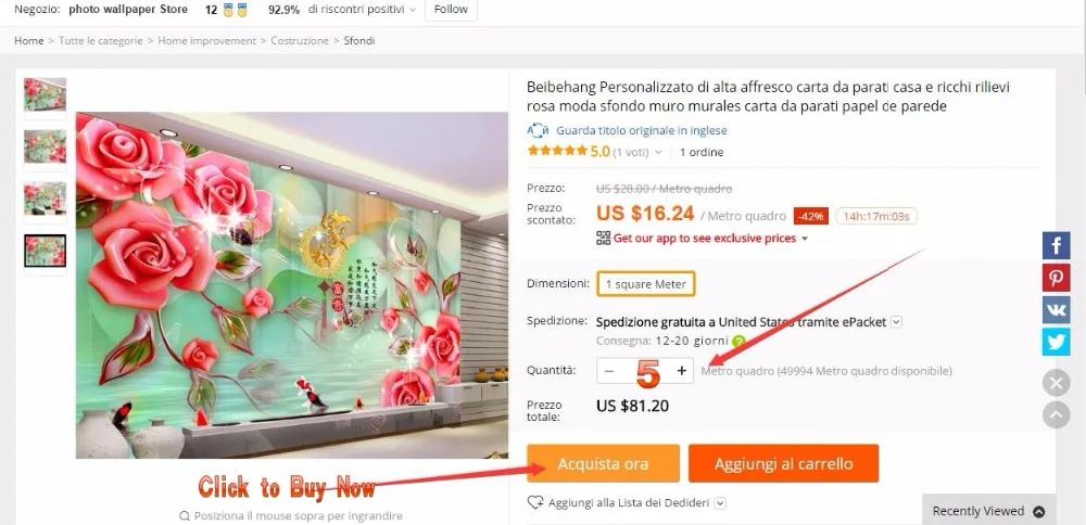 Если вам нужно 5 квадратных настенных обоев, пожалуйста, выберите «количество 5»