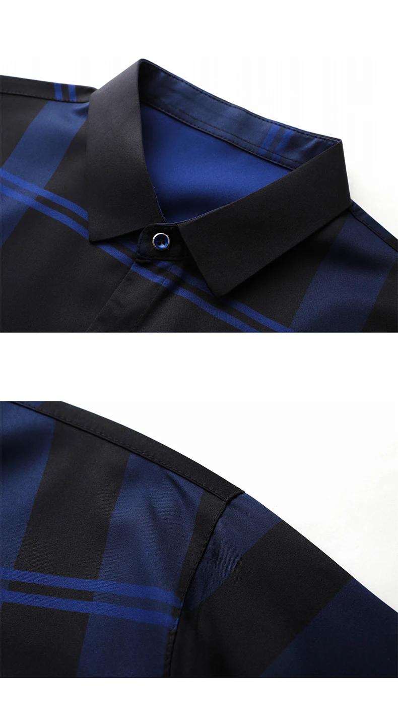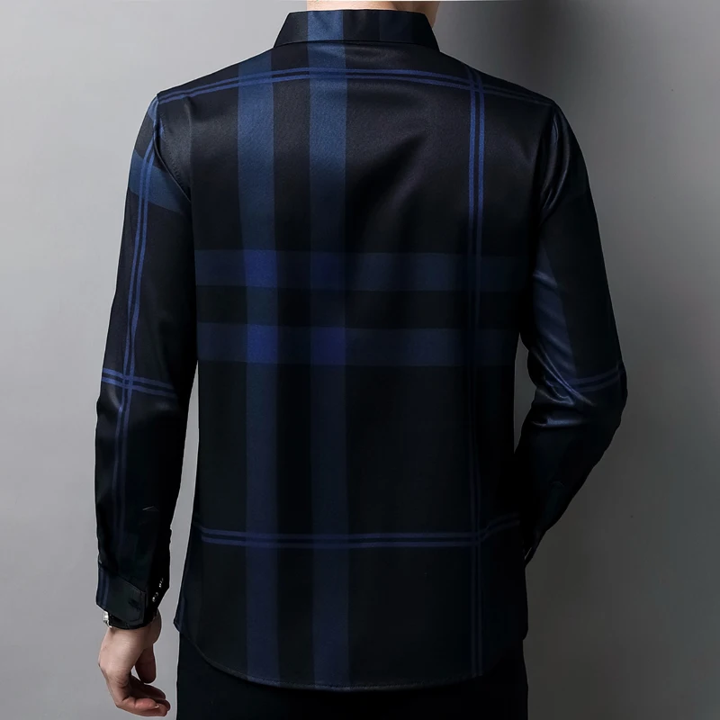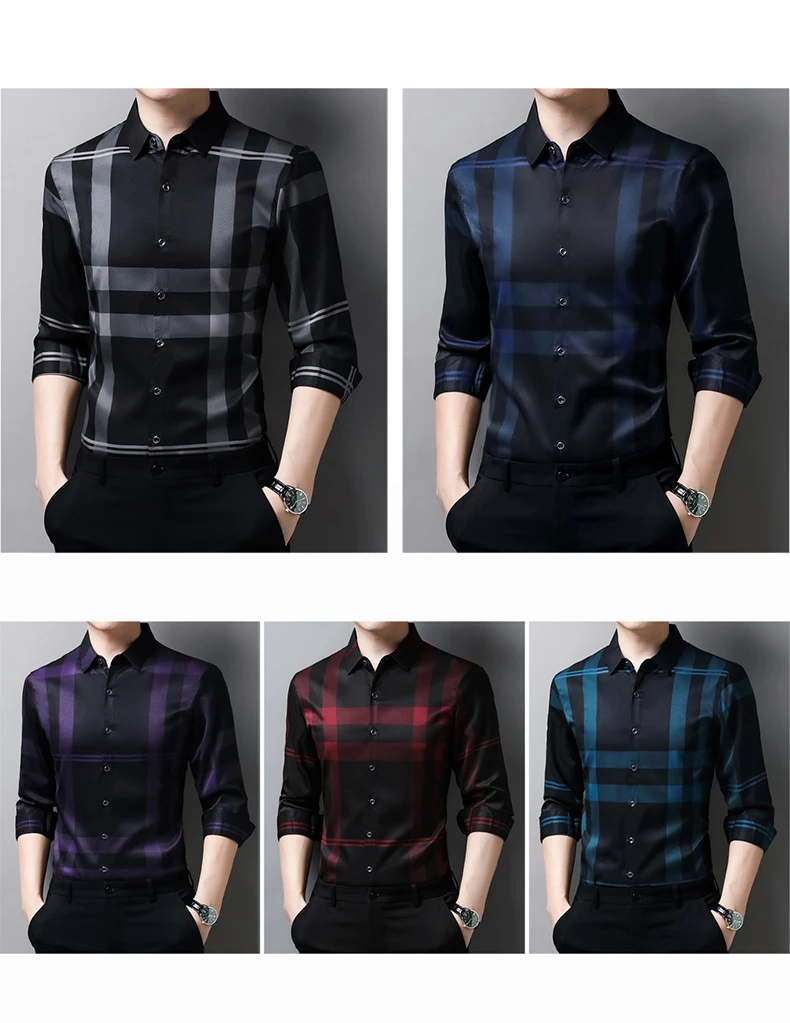Рубашка мужская приталенная с длинным рукавом, шелковая классическая, в клетку, повседневная, весенняя, C728