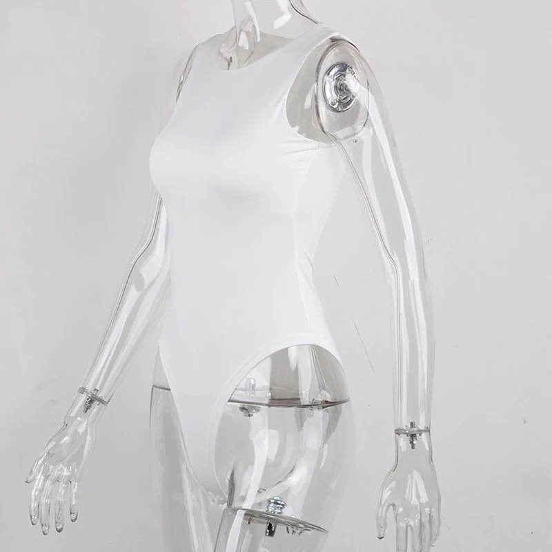 Боди-Топ женский с круглым вырезом, пикантный Белый боди без рукаво...
