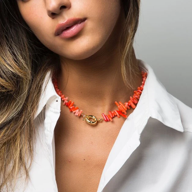Аксессуары красный желтый розовый белый коралловый чокер из натурального камня Подвески самодельные ожерелья для женщин 2021 бохо