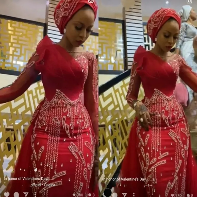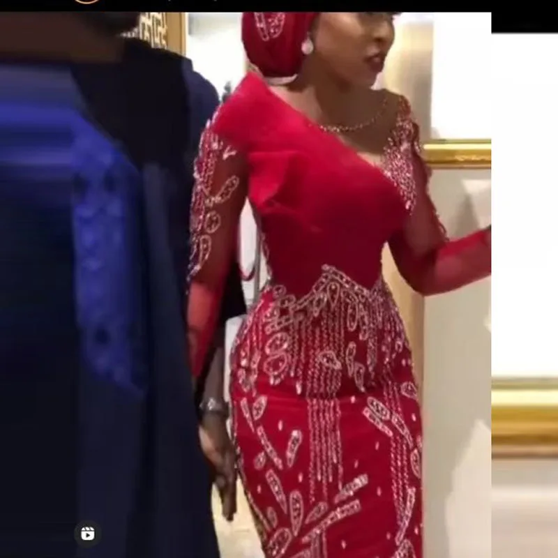 Женское вечернее платье-Русалка Aso Ebi, платье большого размера с длинными рукавами и кружевной аппликацией, расшитое бисером, для выпускного вечера