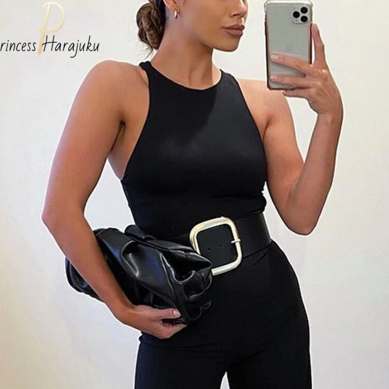 Женский пикантный облегающий однотонный комбинезон без рукавов с кр...
