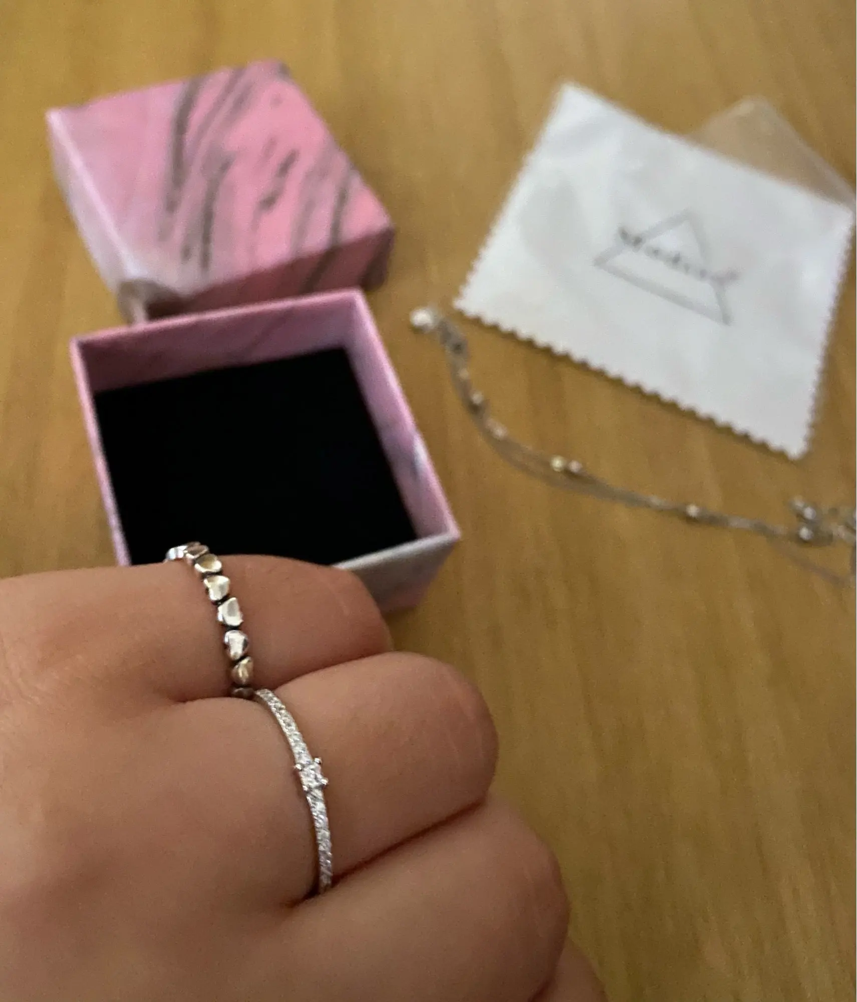 Очень быстрая доставка. Хорошее качество. Хотела на мизинец, но 5 размер оказался велик и пришлось одеть на безымянный.