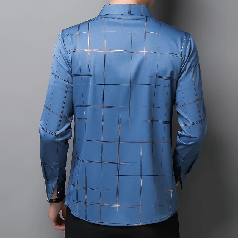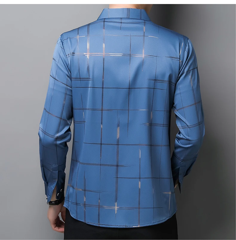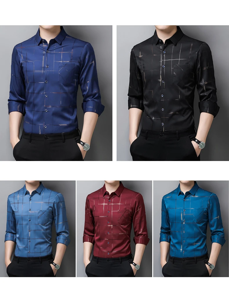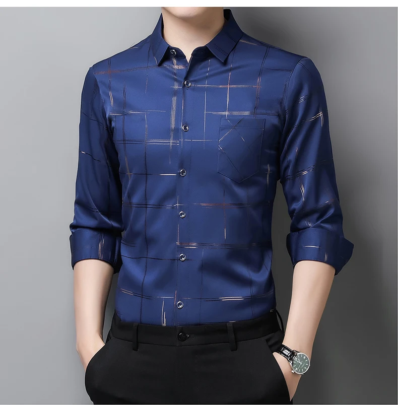 MIACAWOR, Новое поступление, весенние куртки с длинными рукавами, рубашки для мужчин Slim Fit Роскошные шелковая рубашка Повседневная рубашка в клетку Camisa Masculina мужская одежда C731