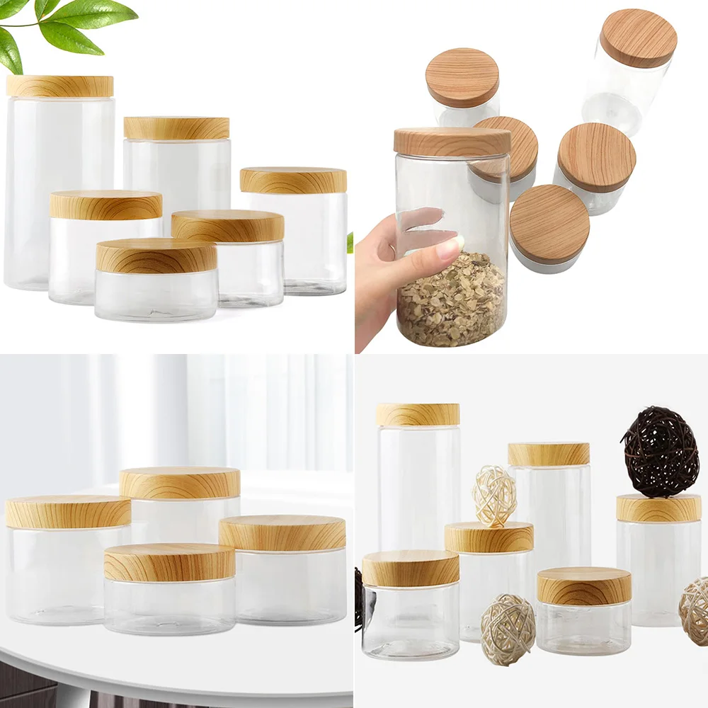 100 мл200 мл300 мл500 мл пластиковая банка с деревянными крышками винтовой прозрачный контейнер пустая Косметическая фотоемкость коробка для макияжа