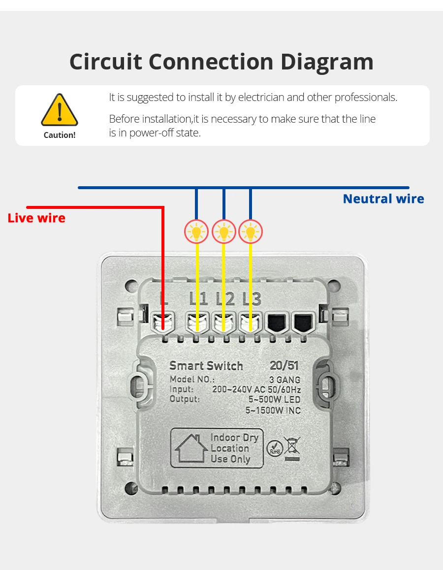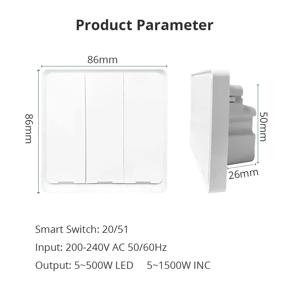 -Этот умный переключатель с большой кнопкой легко для физического контроля.-Прерыватель должен работать с Tuya Zigbee hub, который основан на протокол управления zigbee.-Голосовое управление через Alexa Echo & amp; Google Home через tuya zigbee hub.-Управление таймером, групповое управление допускается в приложении Tuya.-Бесплатное приложение доступно на телефоне Andriod и IOS. -Нет нейтральных требований.Спецификация:-Размер: 86*86*26 мм-Вход: 200-240 В переменного тока, 50 / 60 Гц-Выход: 5-500 Вт светодиодный 5-1500 Вт-Не требуется нейтральный