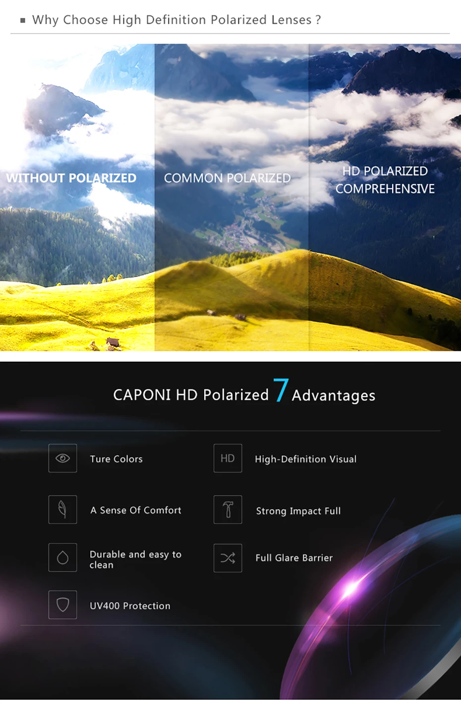 CAPONI спортивные солнцезащитные очки для мужчин Polaroid УФ Защита...