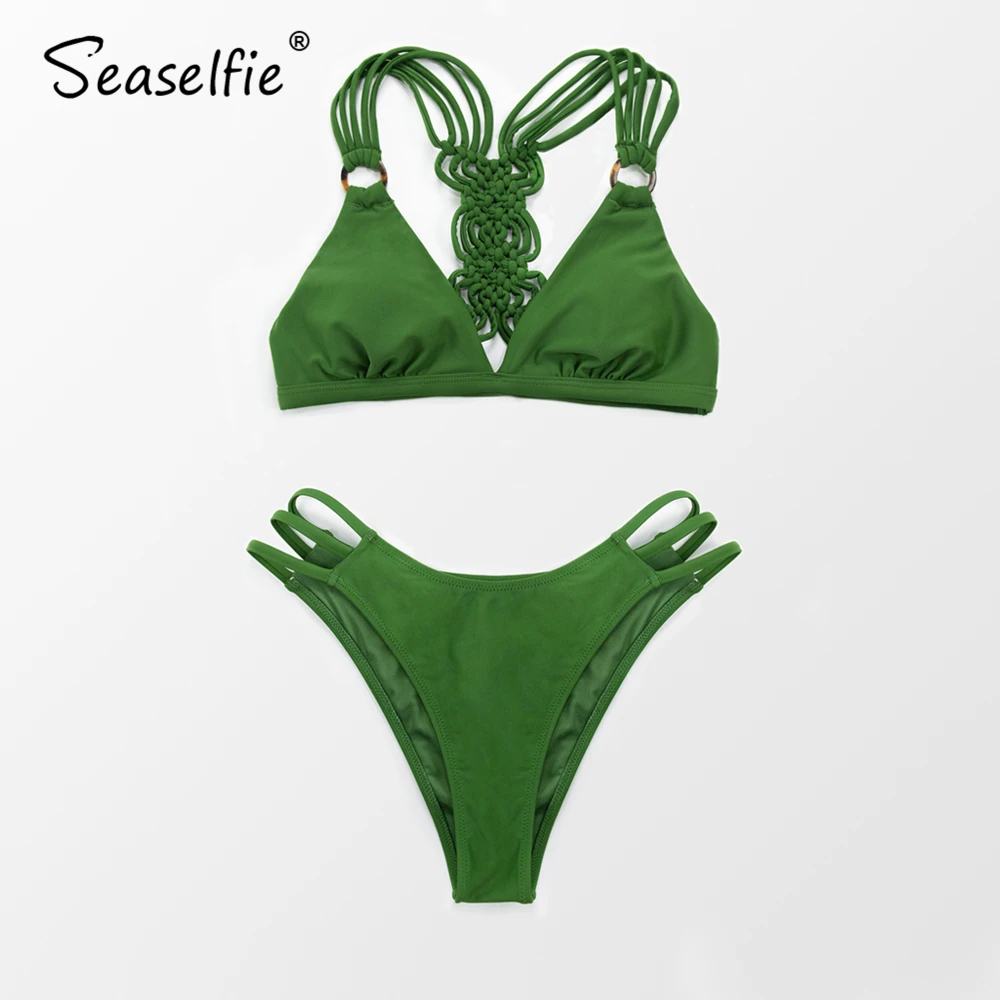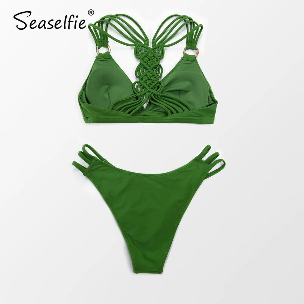 SEASELFIE сексуальные комплекты бикини на бретельках с V-образным в...