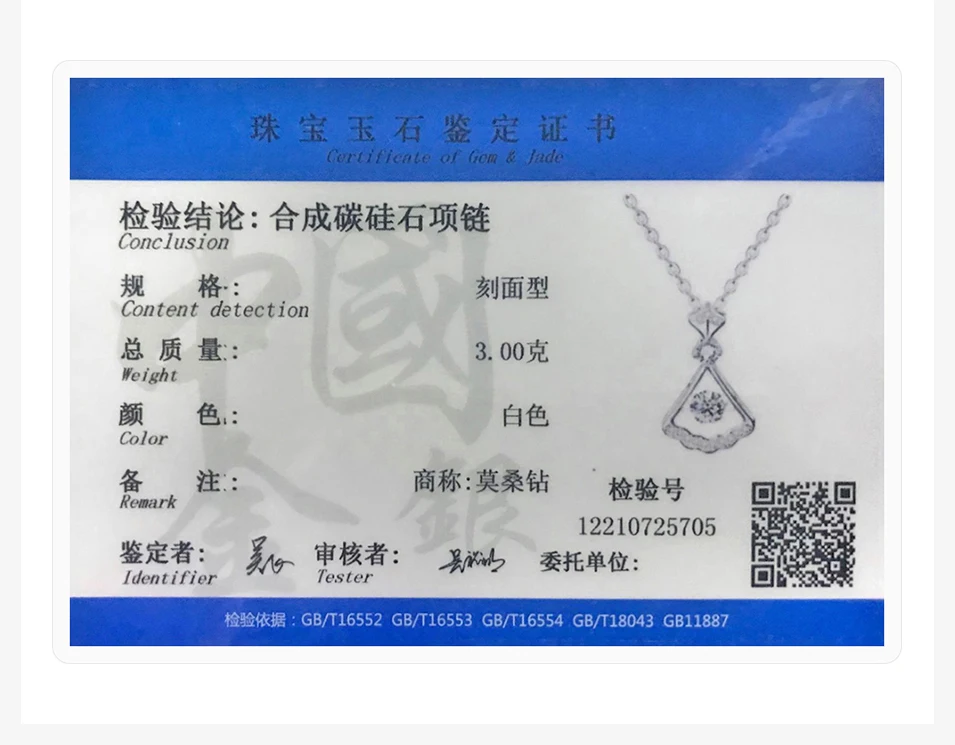 Ожерелье из серебра 100% пробы с муассанитом 925 карат