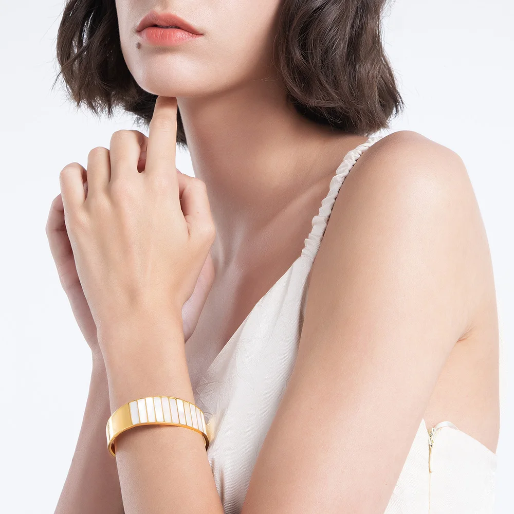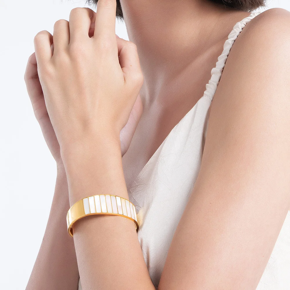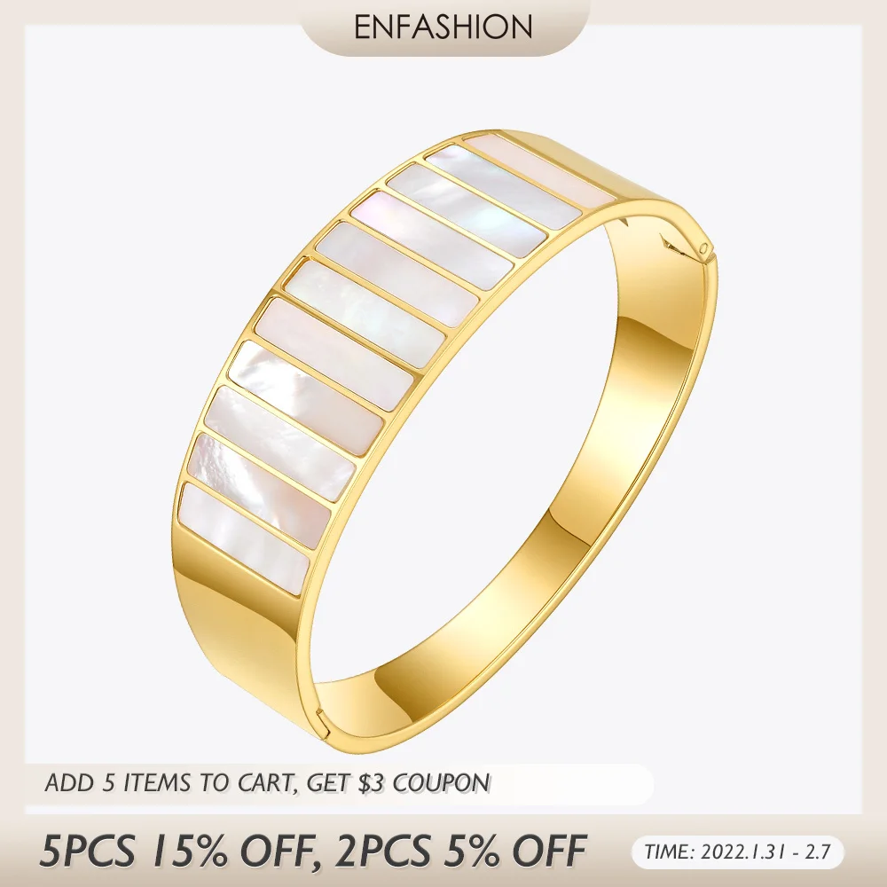 Женский широкий браслет из нержавеющей стали ENFASHION, браслет из натуральной ракушки золотого цвета, B212229