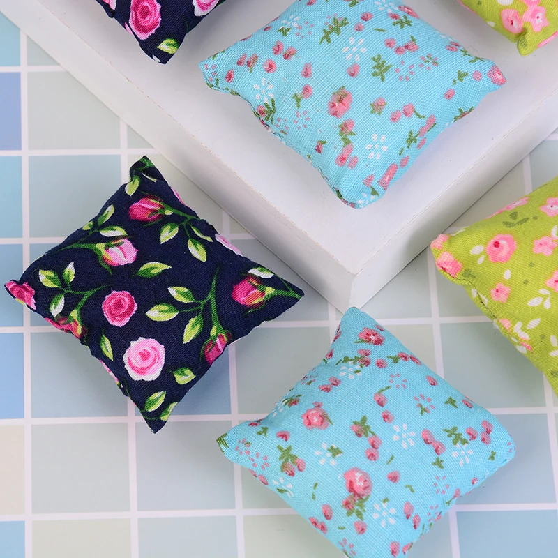 Миниатюрные подушки с цветами для дивана, кровати, кукольного домик...