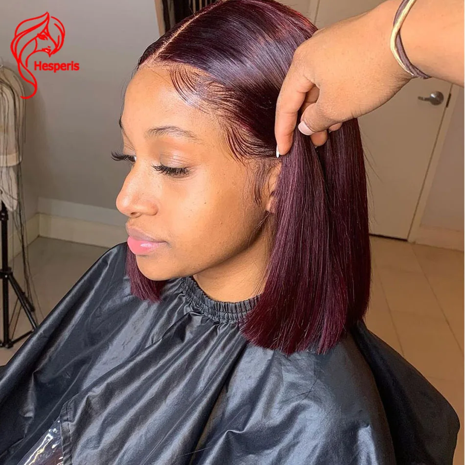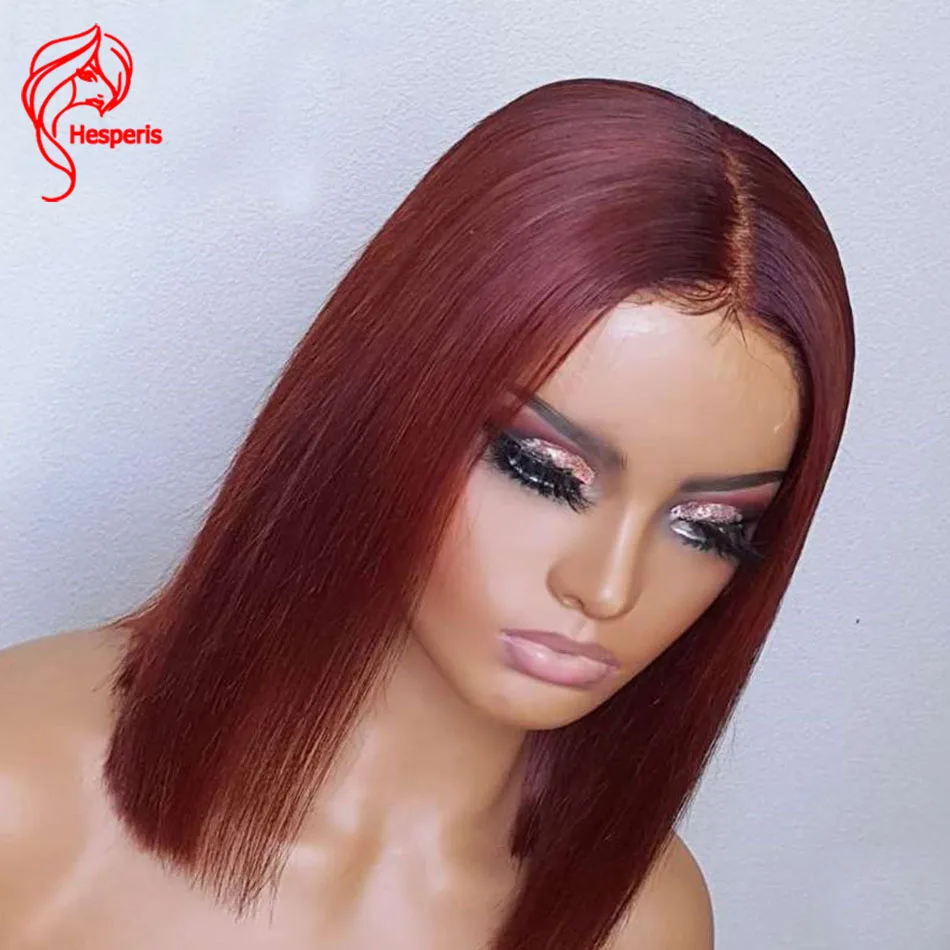 Hesperis 99J короткие парики из человеческих волос, предварительно выщипанные с детскими волосами, бразильские волосы Remy, глубокие части, парики из человеческих волос на шнурке, темно-красные
