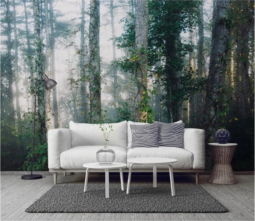 Самоклеящиеся настенные 3D-обои на заказ, настенная Скандинавская Фреска с дымчатым лесом, водонепроницаемая фоновая стена для гостиной и спальни