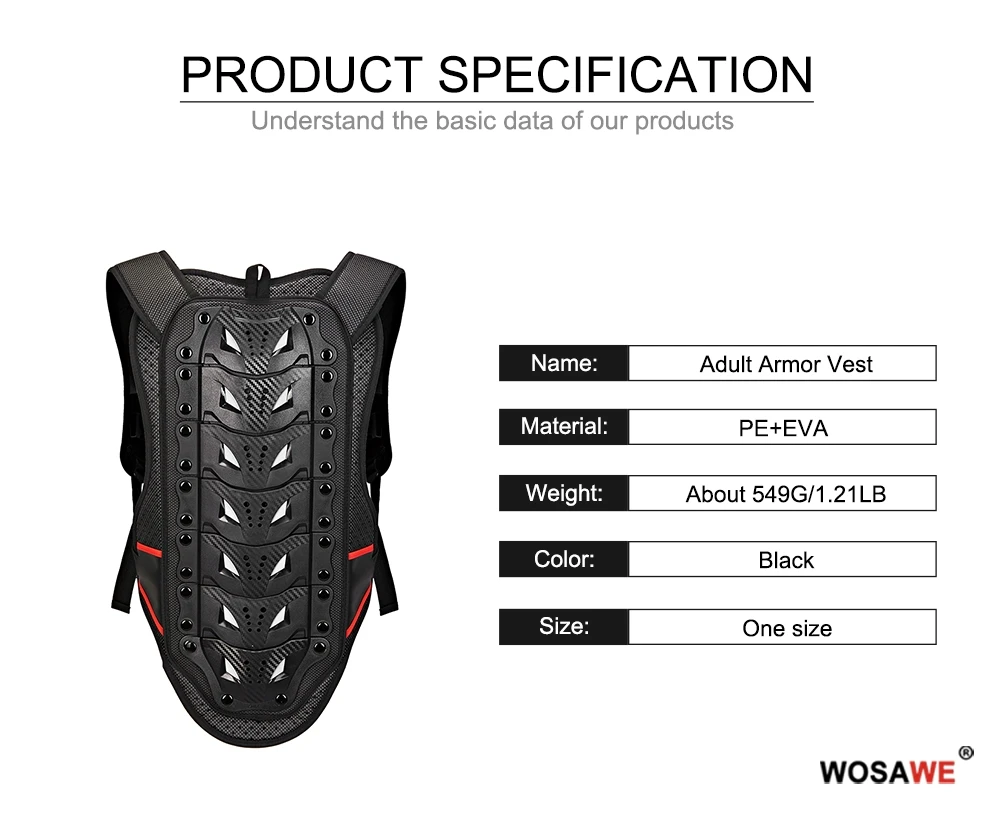 WOSAWE защита для задней части мотоцикла для взрослых подходит для различных видов спорта на открытом воздухе