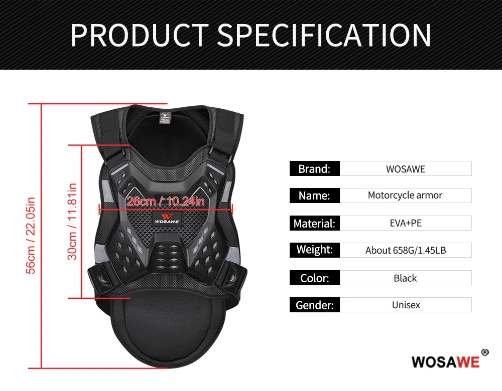 Бронежилет WOSAWE, для мотокросса, для взрослых, защита груди, спины