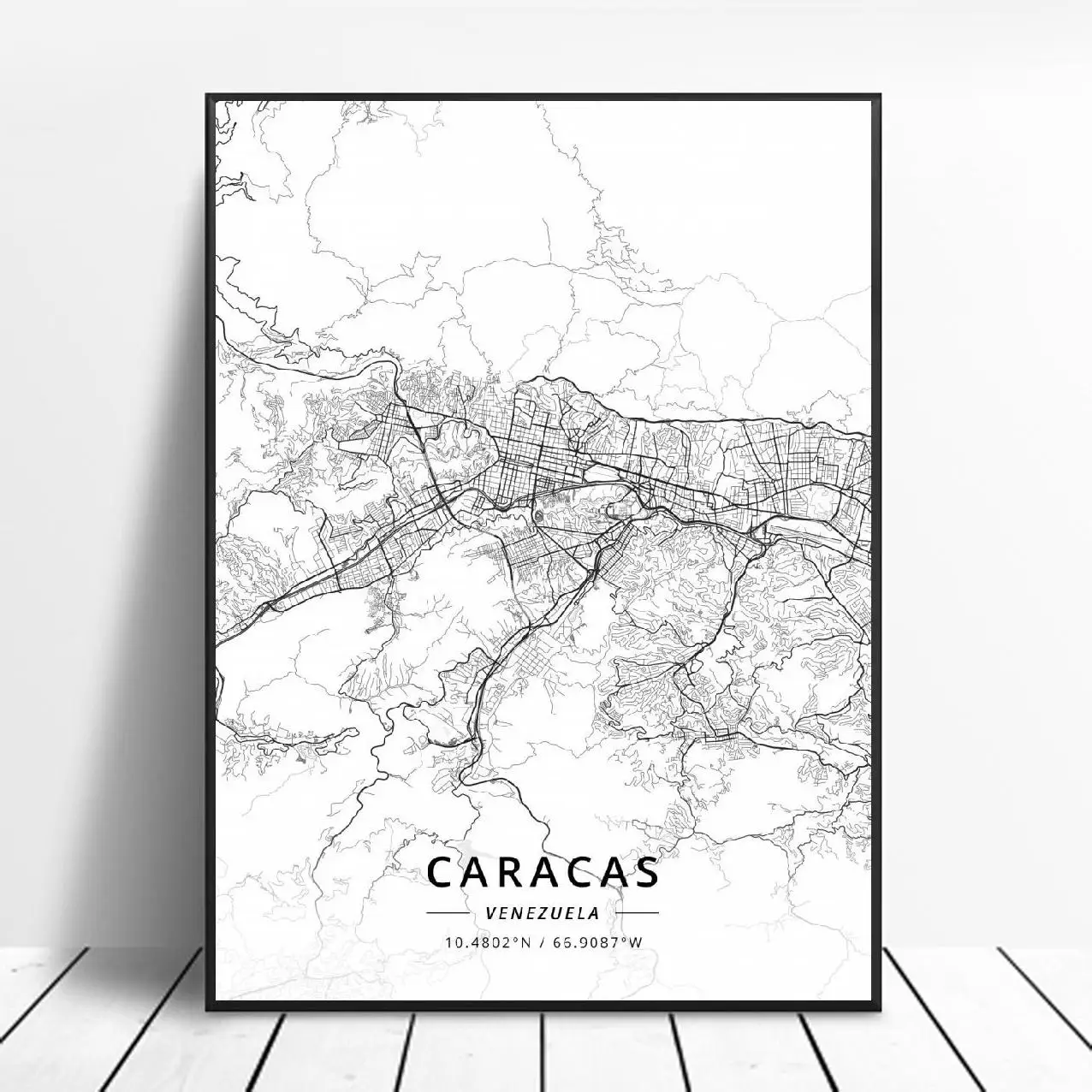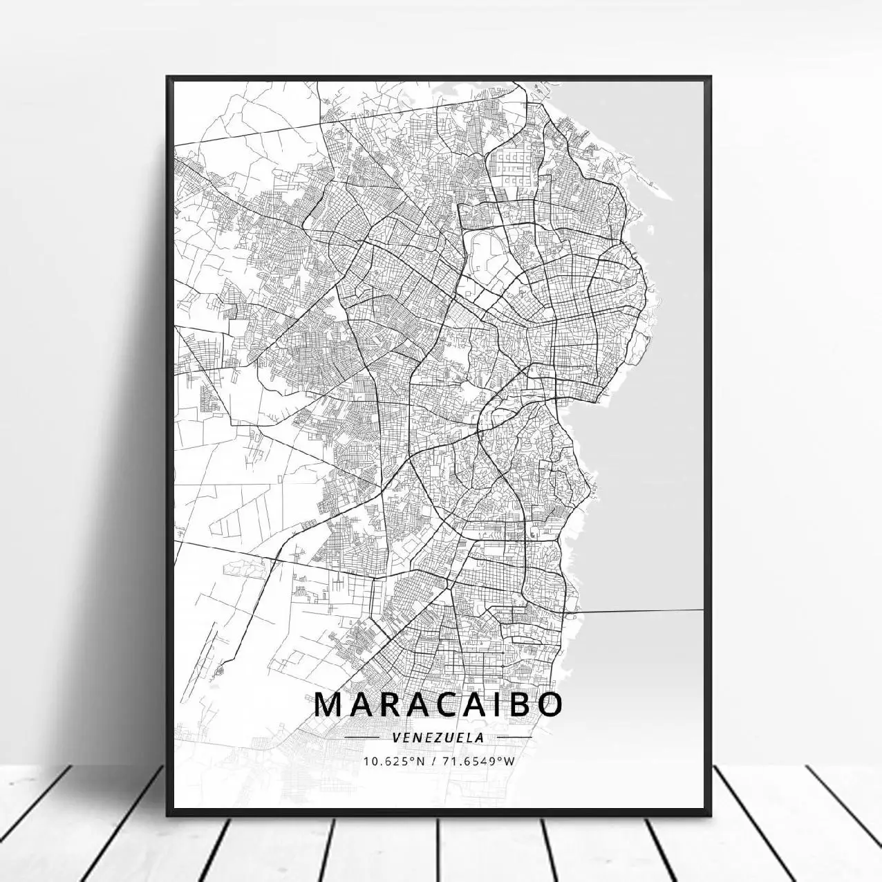 Hd печать, Каракас Маракайбо-Венесуэла, холст, живопись, настенное искусство, абстрактная карта, плакат для комнаты, домашний декор, рамка