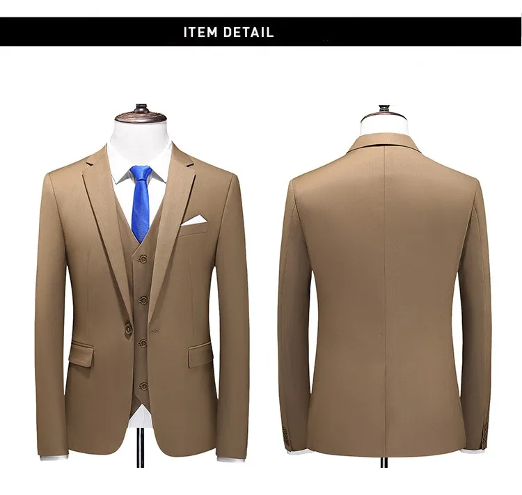 Пиджак + брюки + жилет корейский костюм на одной пуговице Мужская одежда весна 2022 Новинка приталенное свадебное платье Повседневная Деловая одежда смокинг