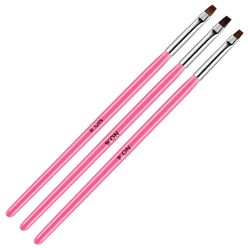Набор кистей для маникюра, 3 шт., розовые наконечники для нанесения...